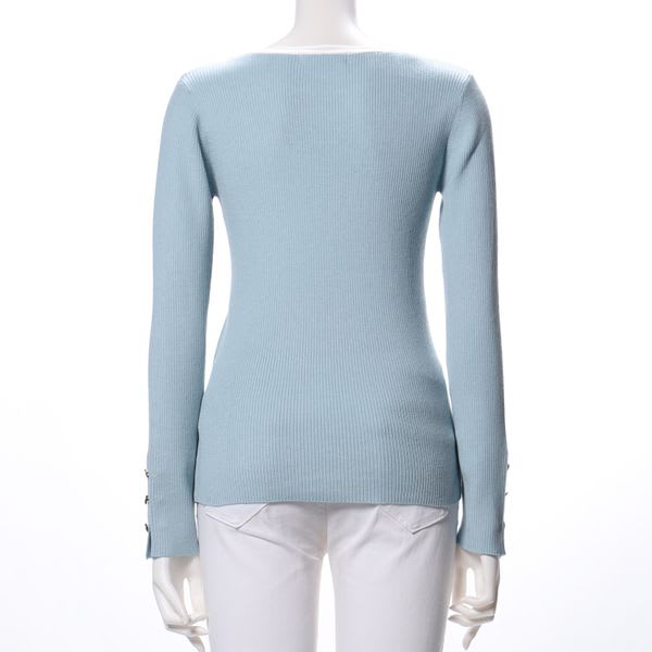 衿配色リブオープンフロントネックニット