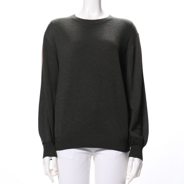 お袖部分のカラー配色がポイントのニットです。ワイドパンツを合わせてラフな着こなしに、タイトスカートを合わせてレディライクな着こなしもいいですね。