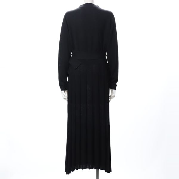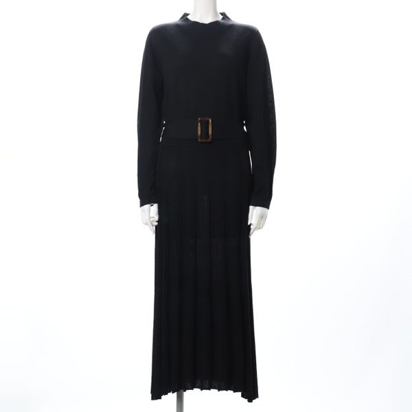 ベルト付きのプリーツニットワンピース。レザーのハンドバッグとパンプスを合わせてレディライクなスタイルに、ショルダーバッグとショートブーツを合わせてカジュアルスタイルも素敵です◎