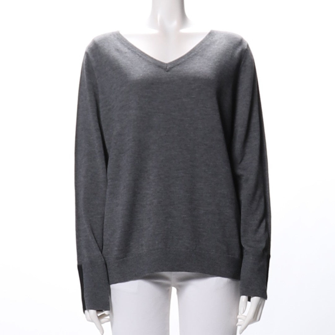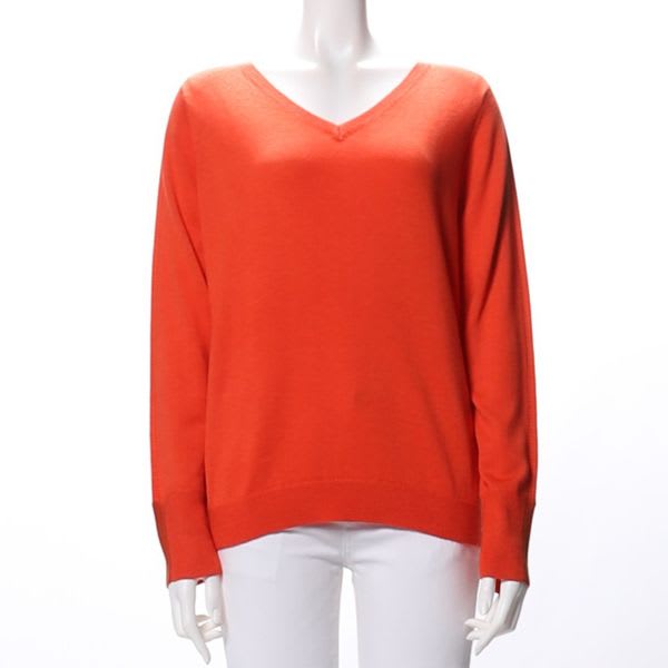 シンプルなデザインのVネックニット。プリーツスカートに合わせて女性らしい着こなしに、デニムパンツに合わせてカジュアルな着こなしもおすすめです!