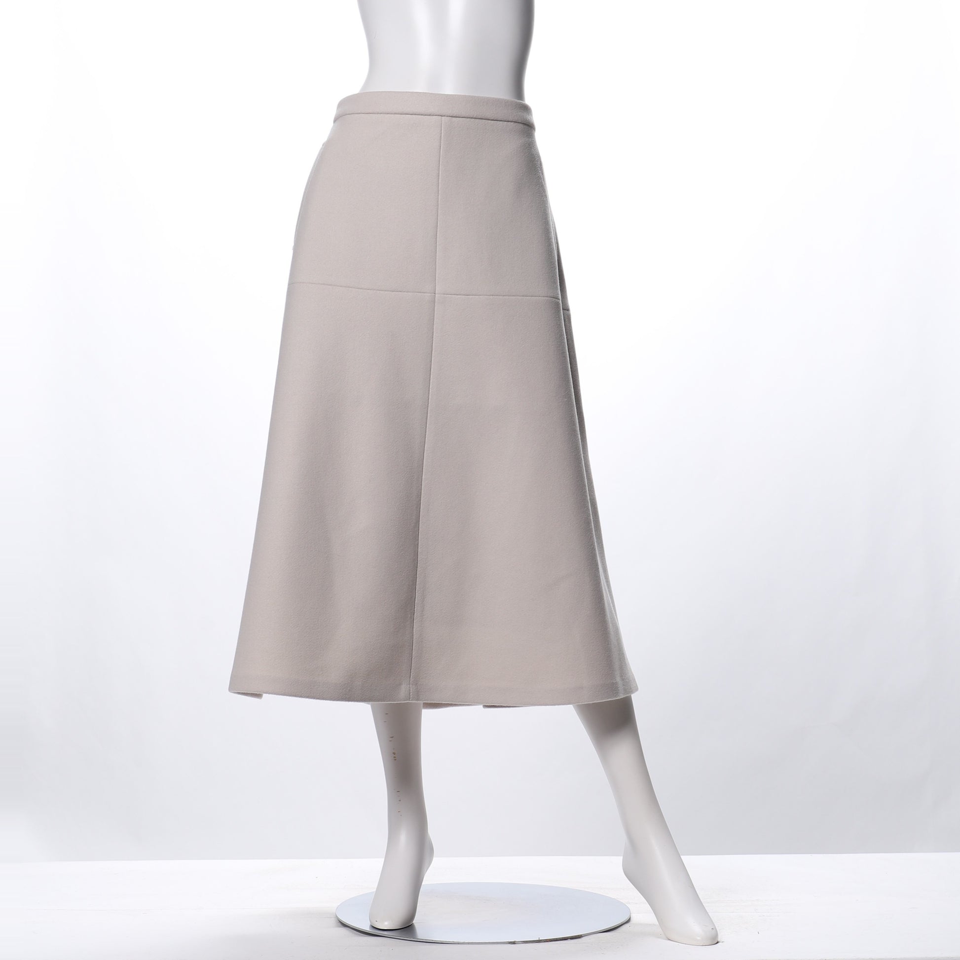 シームがアクセントのAラインスカート。トップスにはハイゲージのクルーネックニットを合わせてキレイめに、ざっくりニットでリラックス感を演出してもステキです。