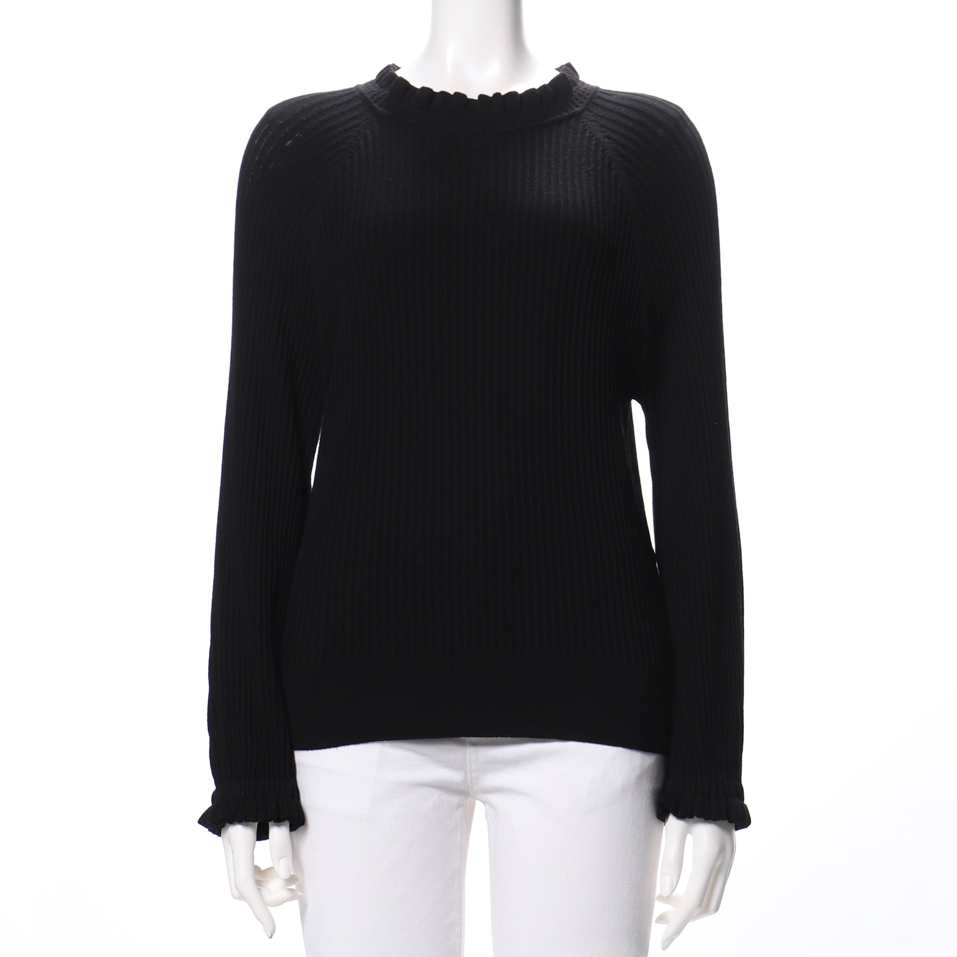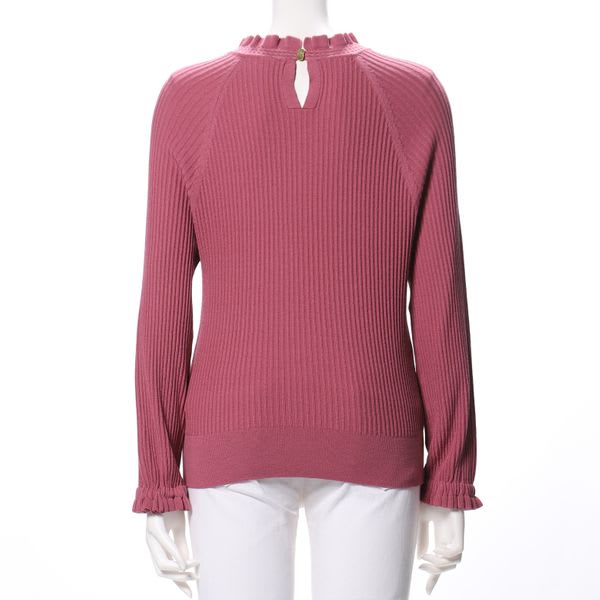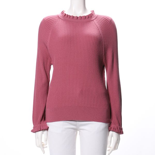 ネックラインとお袖口のフリルデザインがポイントのニットです。デニムパンツを合わせてカジュアルスタイルに、フレアスカートを合わせてフェミニンスタイルもいいですね。