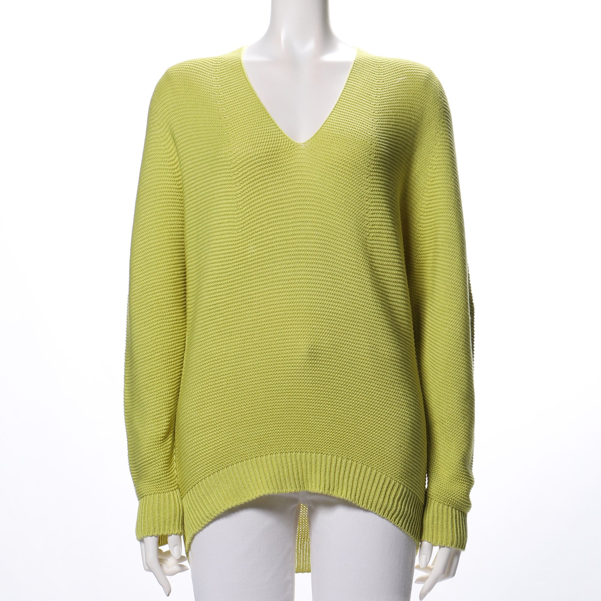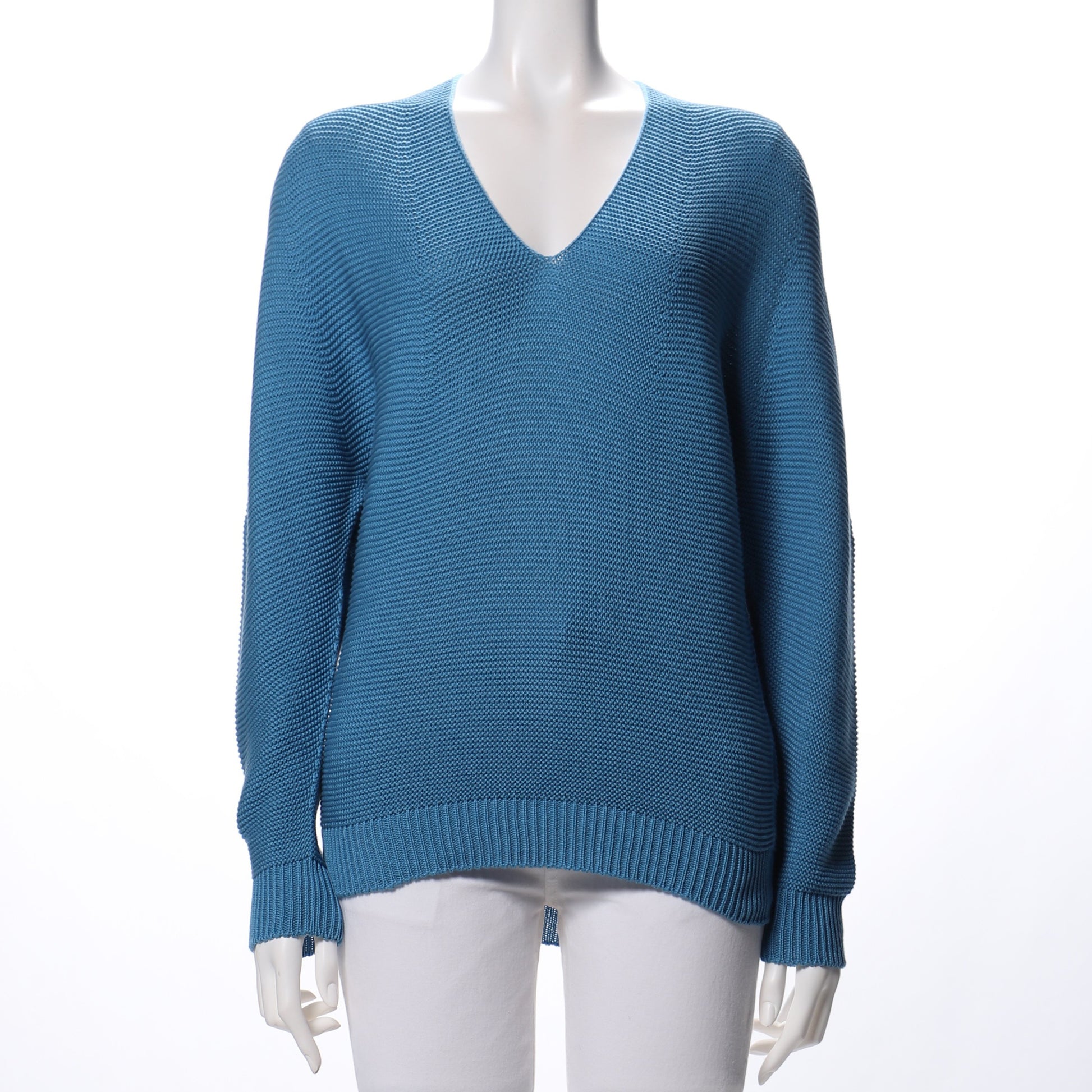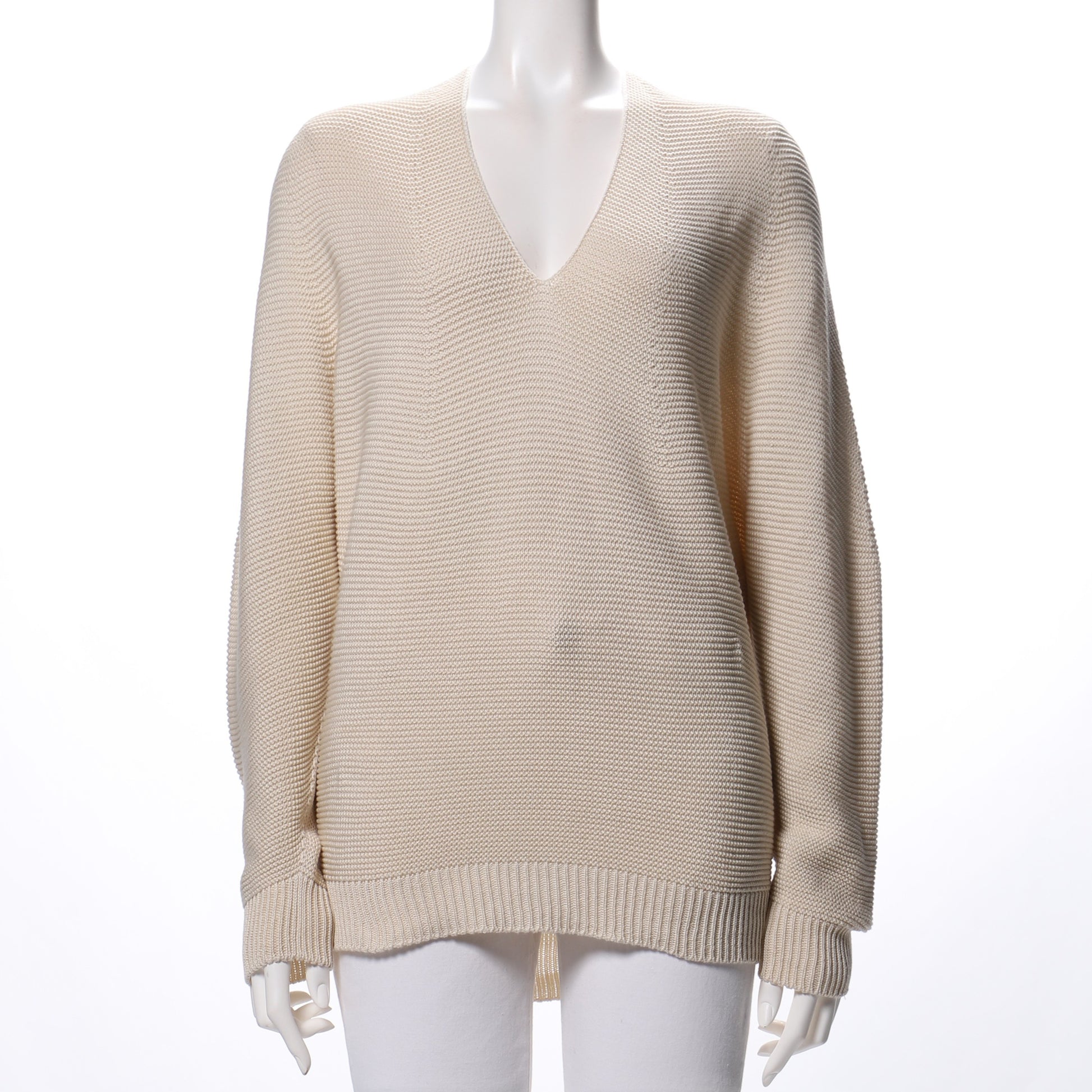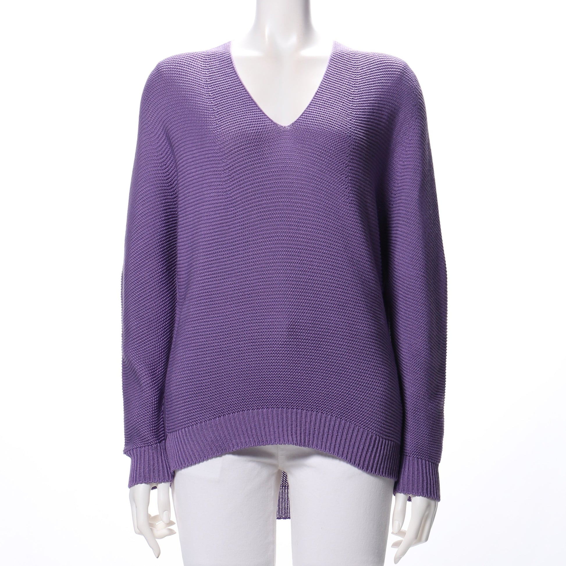 Vネックのホールガーメントニットです。襟抜きで着ていただくのがおすすめですよ。ボトムスにはプリーツスカートを合わせて女性らしく。デニムパンツを合わせてクールなスタイルもいいですね。