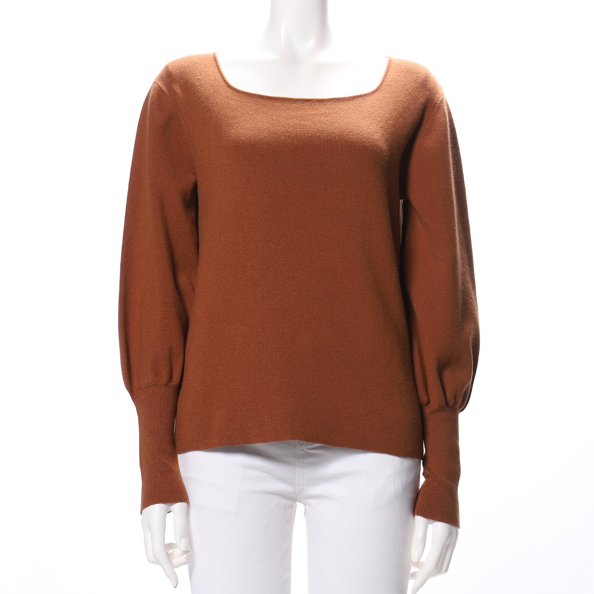ふんわりとしたお袖が女性らしいスクエアネックニットです。チュールスカートと合わせて、フェミニンな着こなしに。デニムパンツと合わせて、カジュアルな仕上がりも良いですね。
