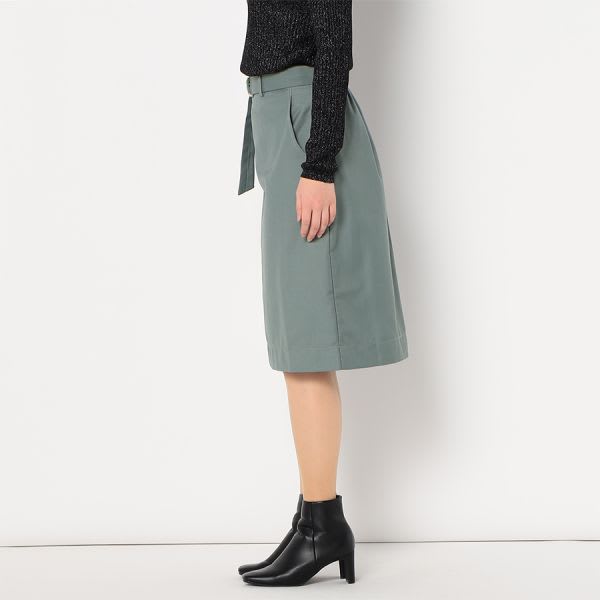 Dカンベルト付きのタイトスカートです。とろみブラウスとパンプスを合わせてレディなスタイルに、カッターシャツとローファーを合わせてクールめなスタイルに仕上げても良いですね。
