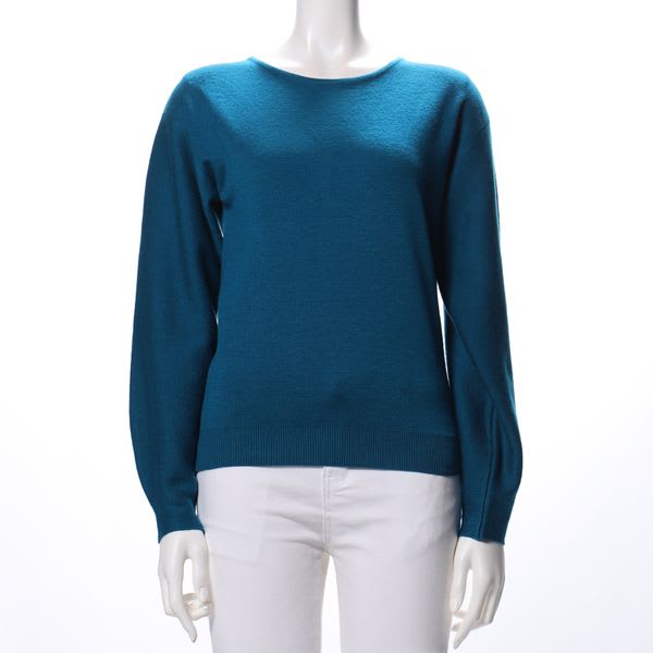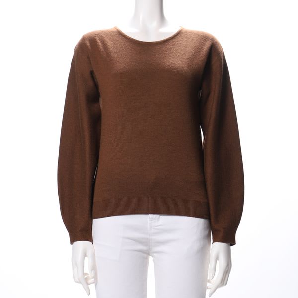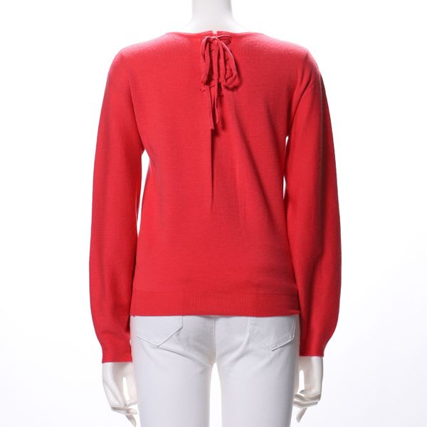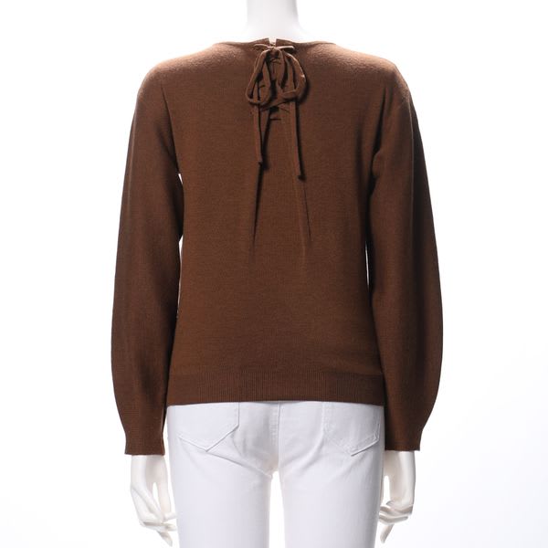 バックレースアップデザインがポイントのラウンドネックニットです。フレアスカートとパンプスを合わせてレディライクなスタイルや、テーパードパンツとフラットシューズを合わせてカジュアルなスタイルもいいですね。