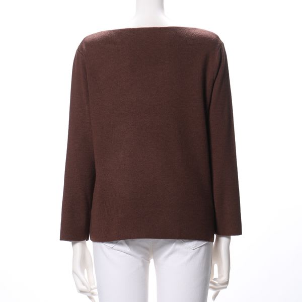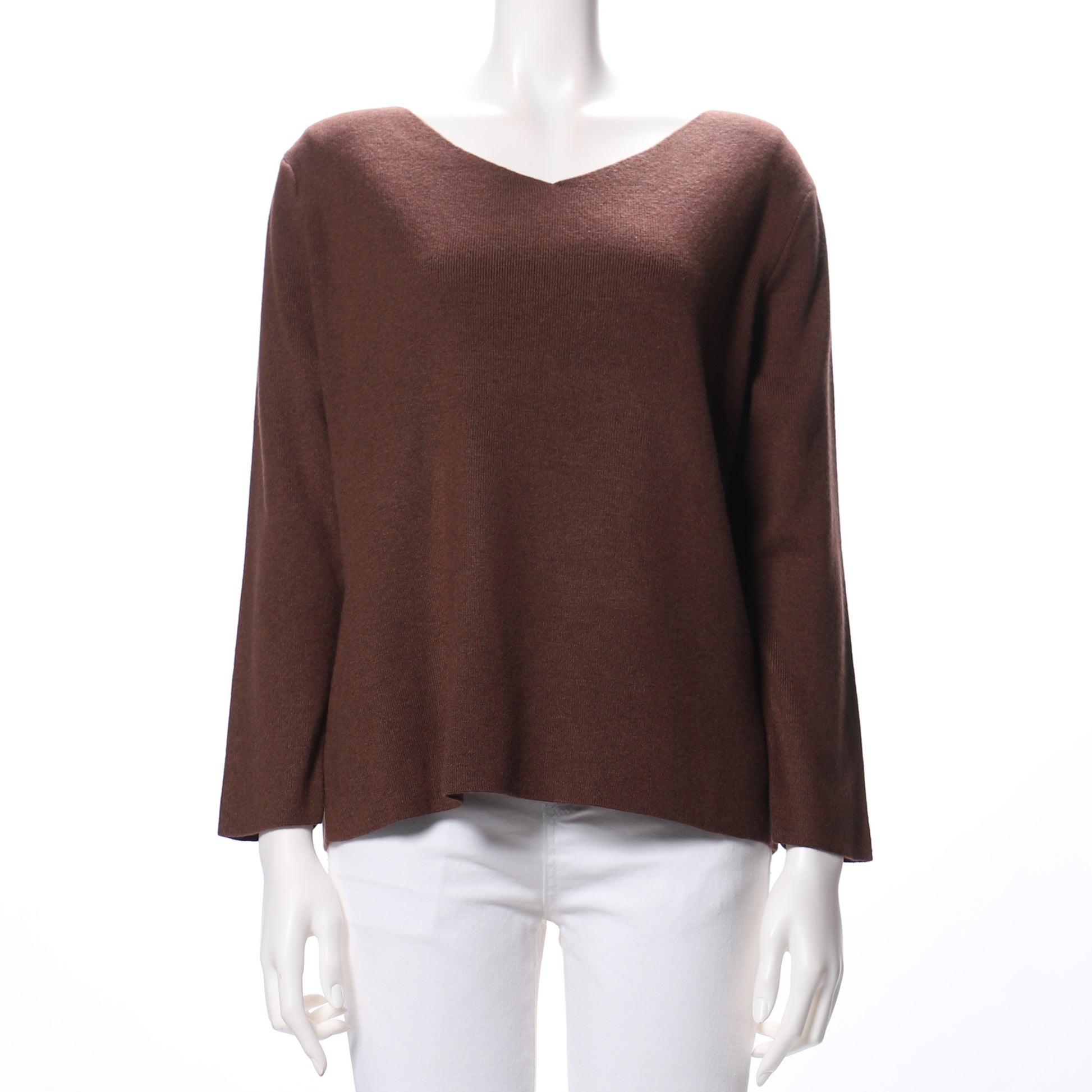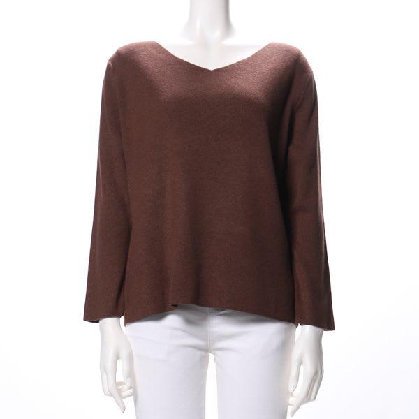 着回しして頂きやすいシンプルなVネックニットです。フレアスカートを合わせて、女性らしい着こなしに。センタープレスのパンツを合わせて、スッキリとまとめても良いですね。