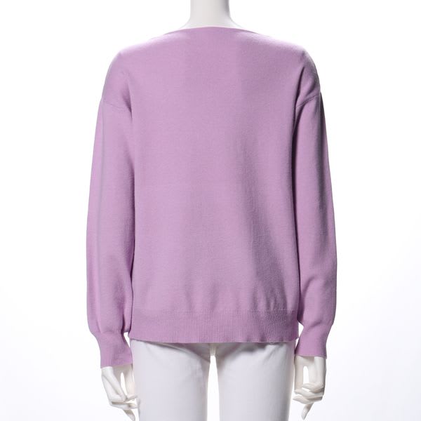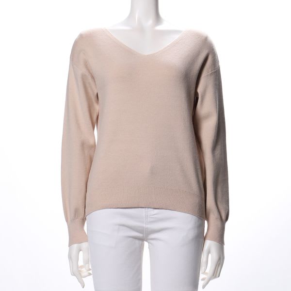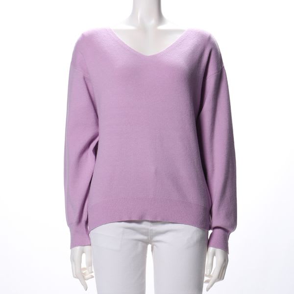 着回しやすいデザインのVネックニット。ボトムスにはフレアスカートを合わせてフェミニンに、テーパードパンツで辛めにまとめてもいいですね。