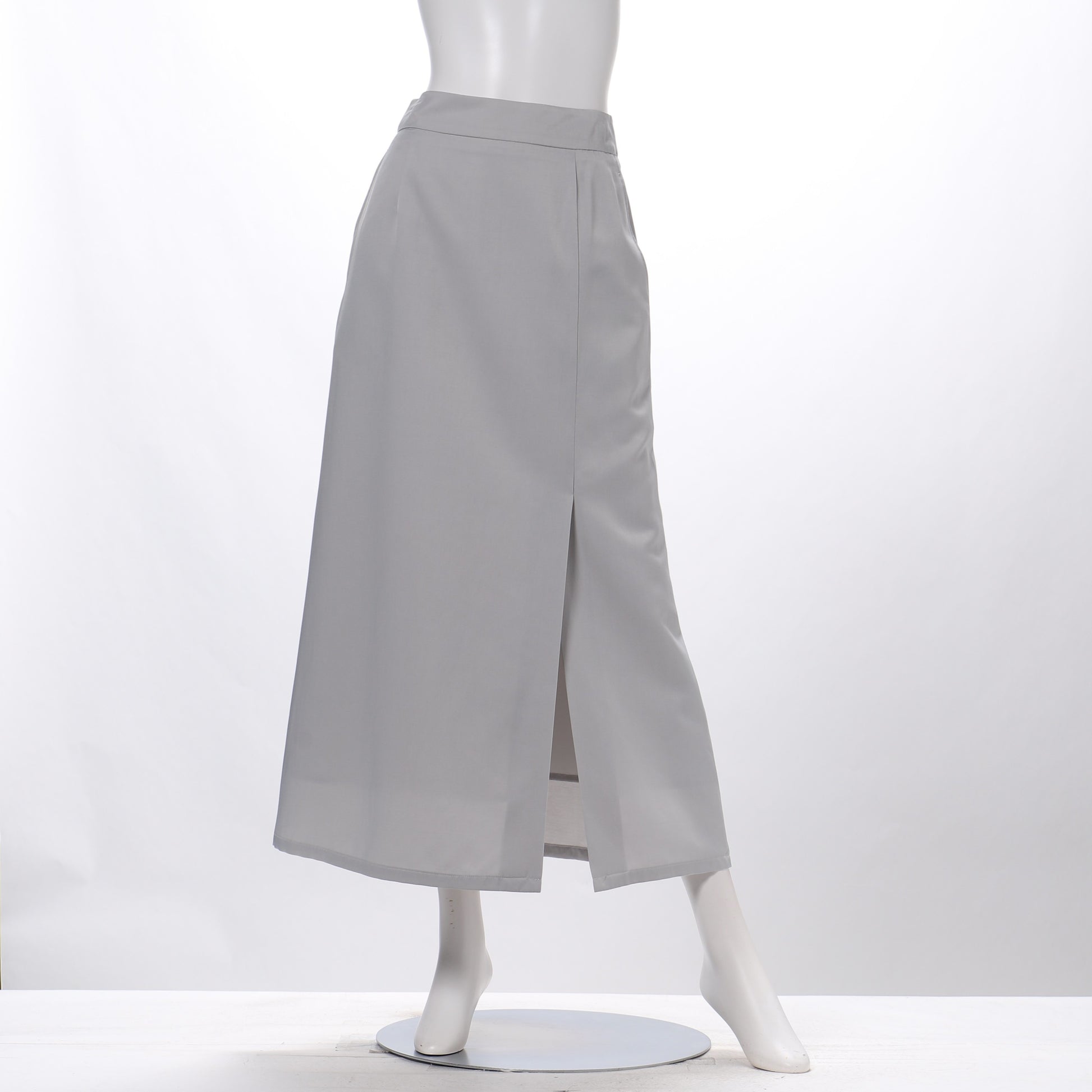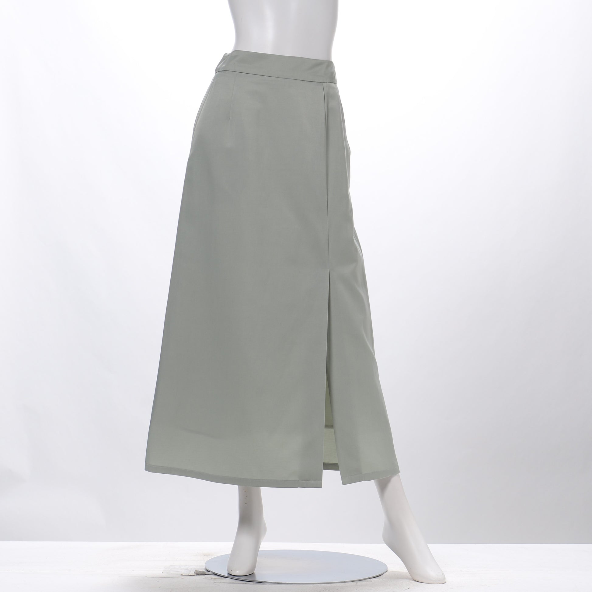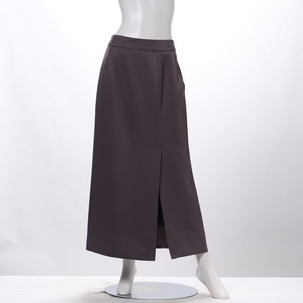 フロントのスリットがポイントの光沢のあるスカート。スキッパーブラウスとポインテッドトゥパンプスを合わせてスタイリッシュなスタイルに、キャンディースリーブブラウスとラウンドパンプスを合わせてレディライクなスタイルも素敵ですよ!