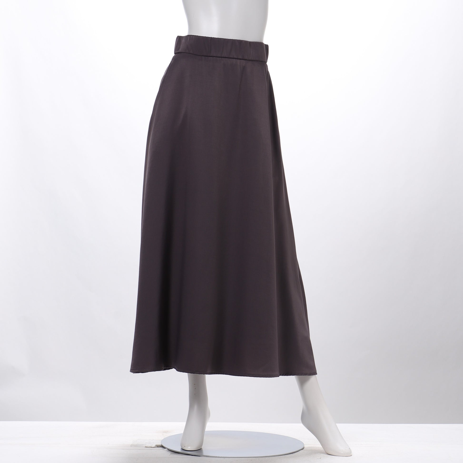 シンプルなデザインの光沢のあるフレアスカート。とろみブラウスとヒールパンプスを合わせて綺麗めなスタイルに、カットソーとフラットシューズを合わせてカジュアルな着こなしもおすすめです!