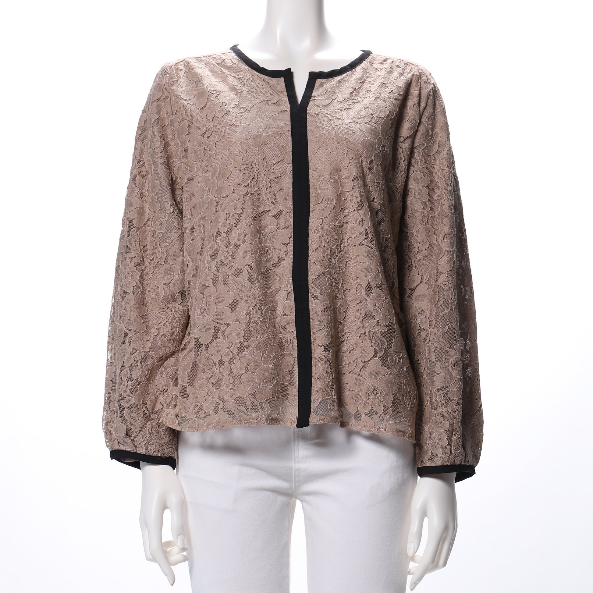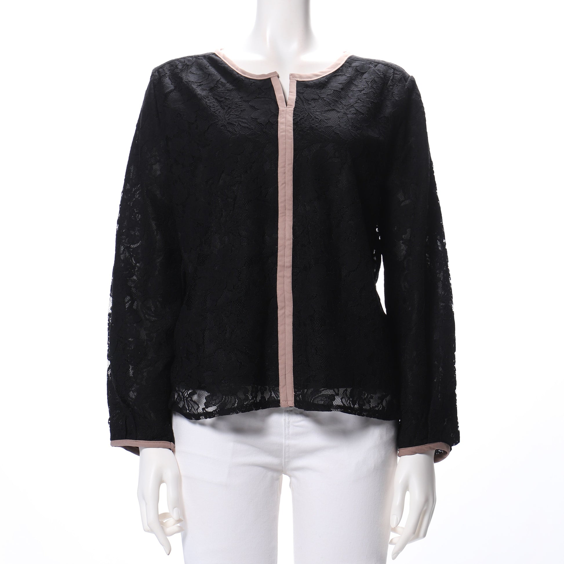 パイピングがポイントのレースブラウス。テーパードパンツに合わせて綺麗めなスタイルに、フレアスカートに合わせてフェミニンスタイルも素敵ですね!