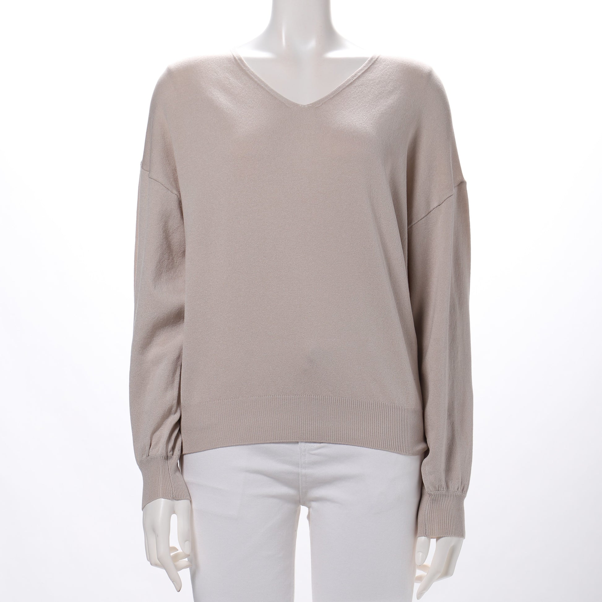 前後Vネックデザインのドロップショルダーニットです。ワイドパンツを合わせてラフな着こなしに、タイトスカートを合わせてレディライクな着こなしも素敵ですね。