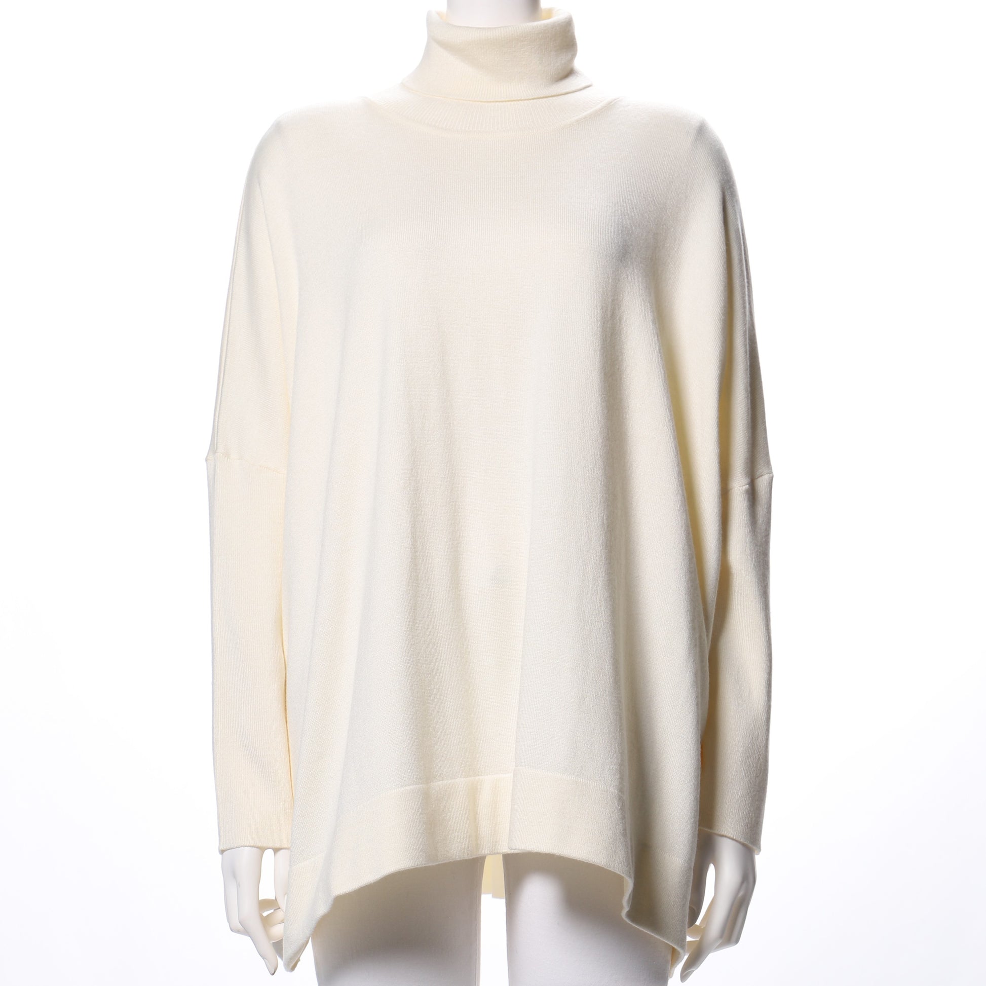 ゆったりとしたシルエットのタートルネックニット。ボトムスにはデニムパンツを合わせてカジュアルに、ペンシルスカートで女性らしくまとめてもステキです。