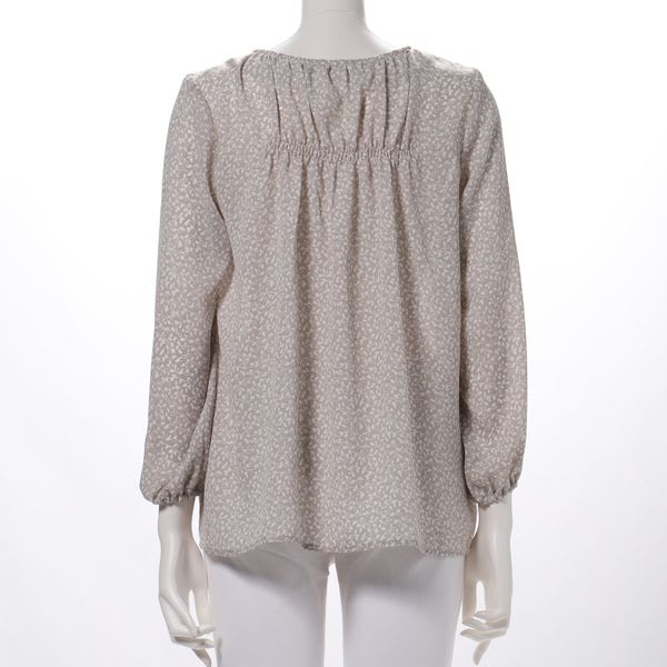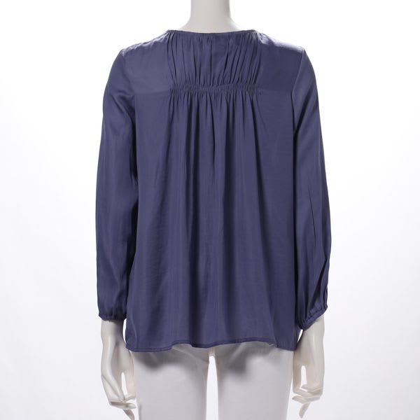 ネックラインと背面に寄せたギャザーデザインが特徴のブラウス。デニムパンツを合わせてカジュアルに、タイトスカートを合わせてオフィスライクに仕上げても素敵です。