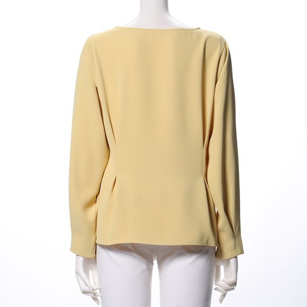 身頃にタックの入ったペプラムブラウス。タイトスカートを合わせてきれいめスタイルに着たり、スキニーパンツを合わせてカジュアルに着るのもいいですね。