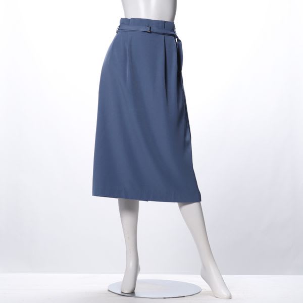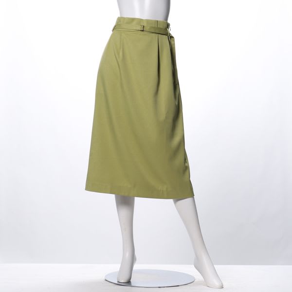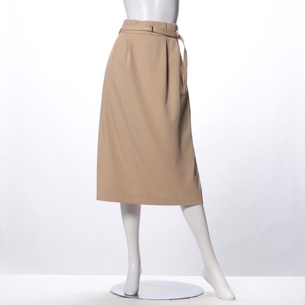 ウエストベルトのセミタイトスカートです。とろみブラウスとパンプスで女性らしい着こなしに。カットソーにスニーカーでカジュアルな印象も素敵です。