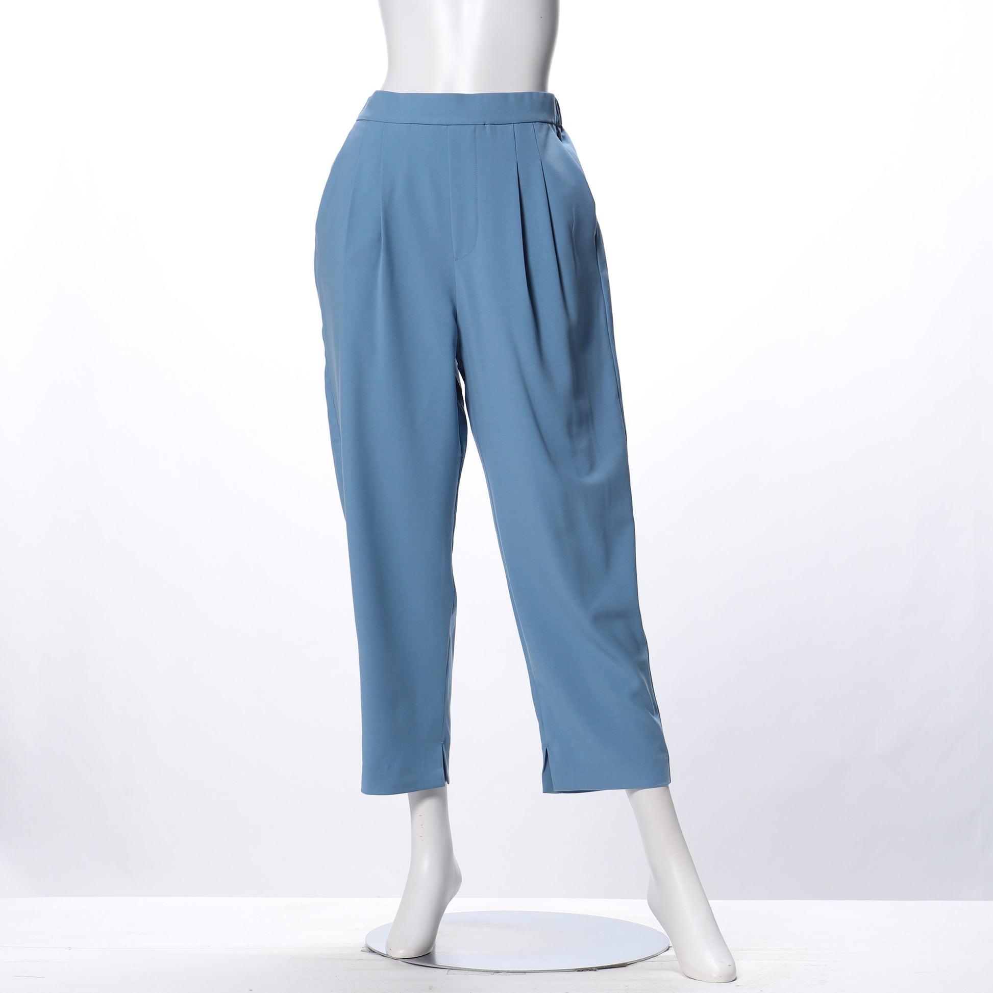 タック入りのテーパードパンツ。フレアスリーブブラウスとラウンドパンプスを合わせて女性らしいスタイルに、スキッパーブラウスとポインテッドトゥパンプスを合わせてスタイリッシュなスタイルもおすすめです!