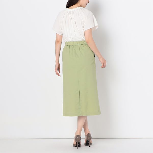 「色も形大好きなタイプのスカートです。後ろにゴムが入っていない方が、ウェストがしゅっと締まって個人的には好みです。素材的にはシワになりやすいものは、普段着る時にちょっと気をつかいます。」