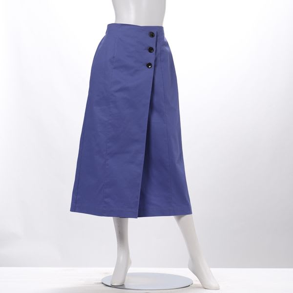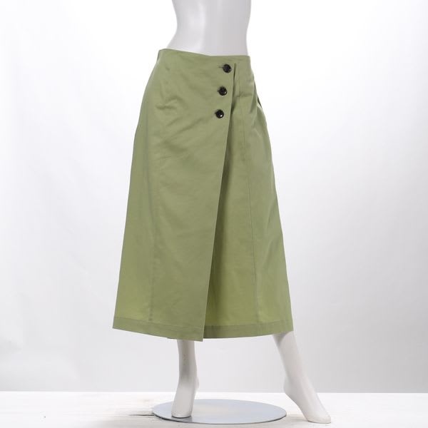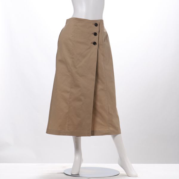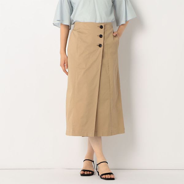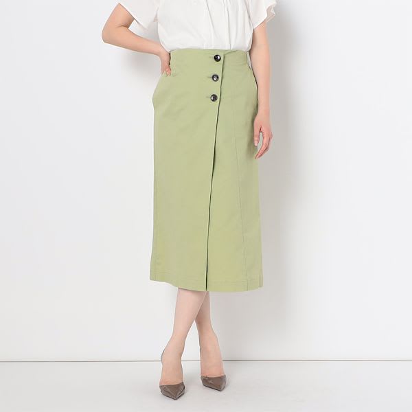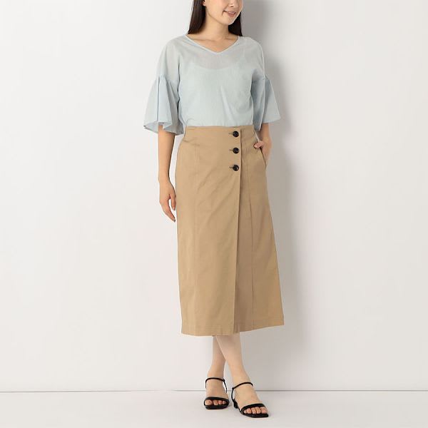 ボタンがポイントのラップ風スカート。スキッパーブラウスとヒールパンプスを合わせて綺麗めなスタイルに、ボーダーカットソーとスニーカーを合わせてカジュアルスタイルも素敵です。
