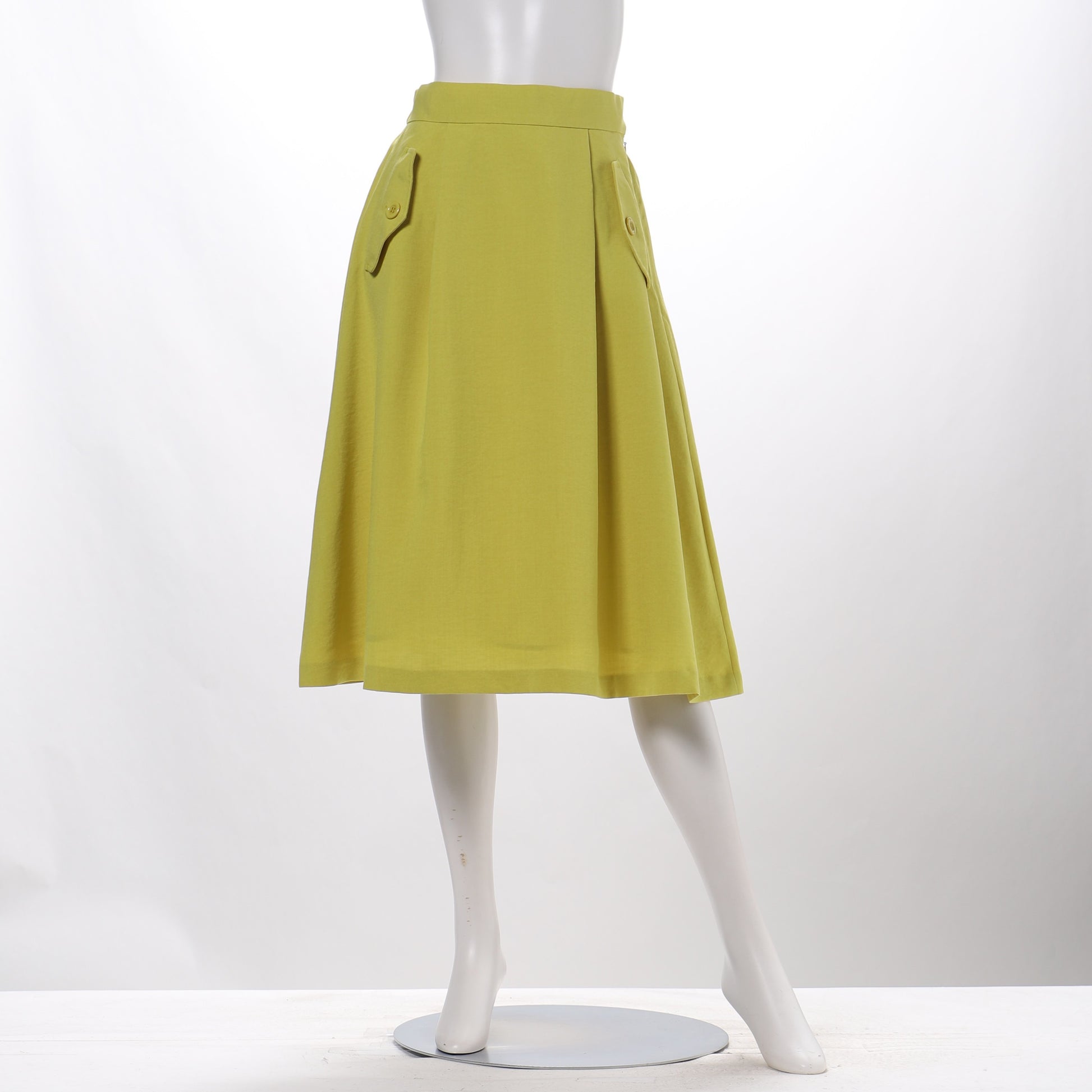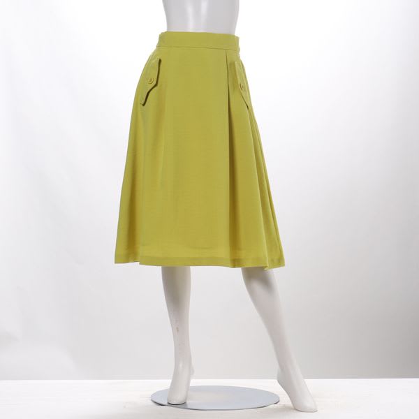 フラップポケットデザインの麻調合繊素材のフレアスカート。