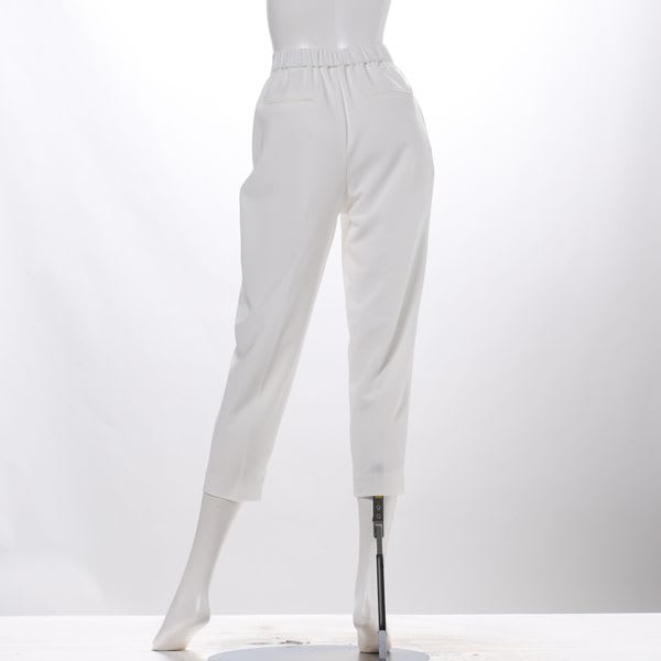 ウエストツータックのテーパードパンツです。とろみブラウスとフラットパンプスを合わせて女性らしく、シャツとスニーカーでクールな着こなしもいいですね。