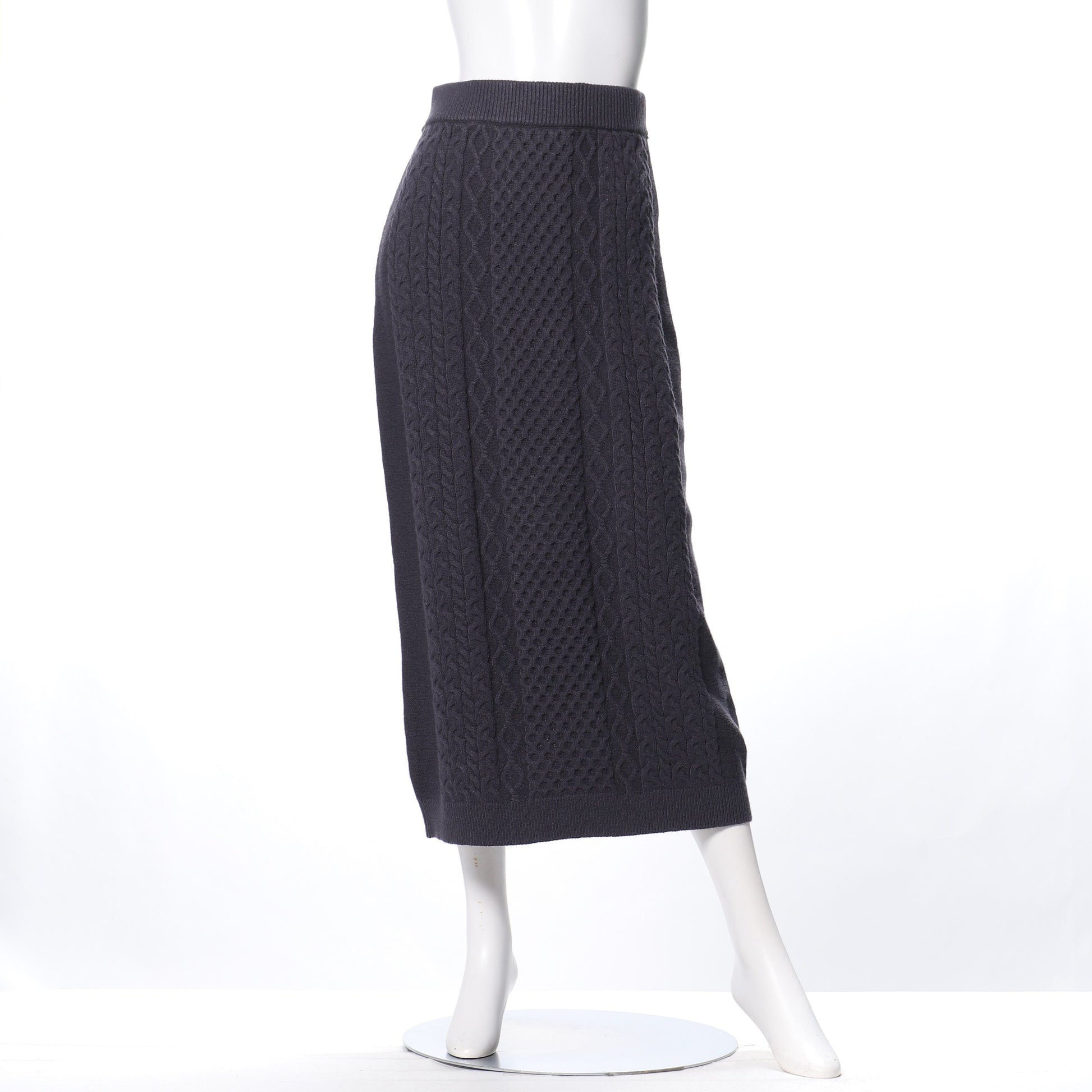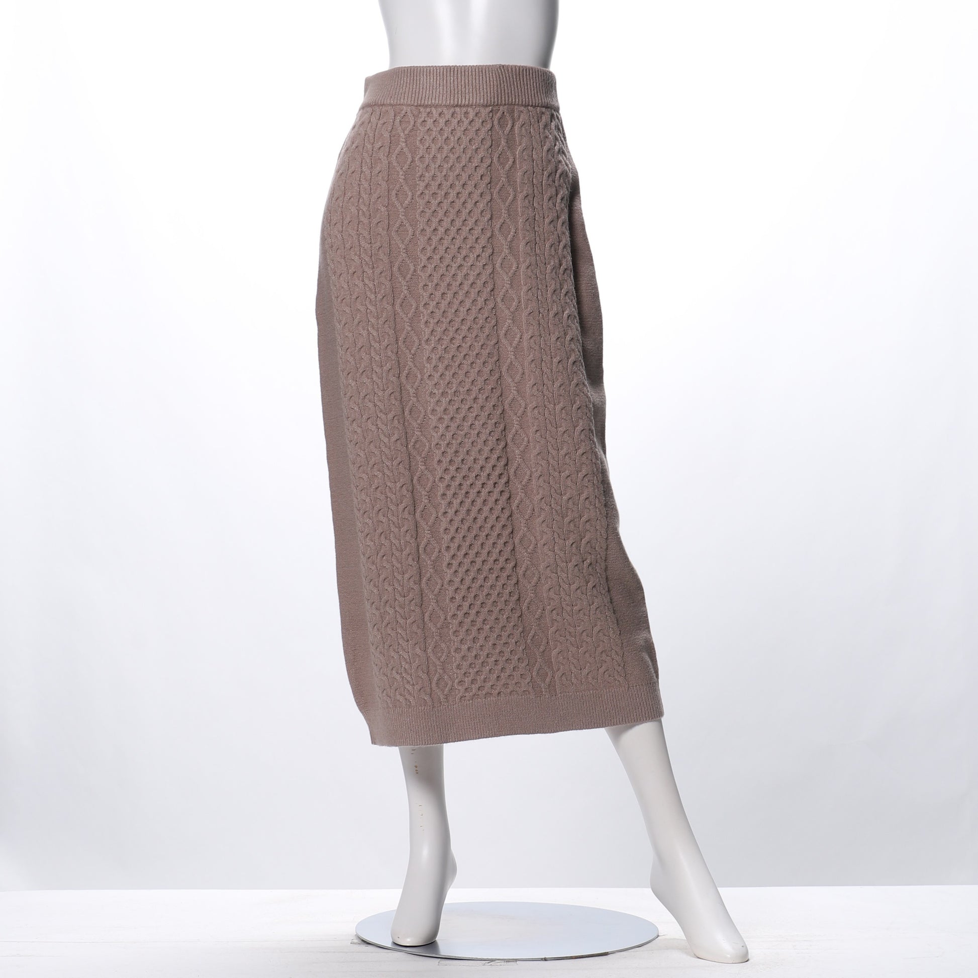 デザイン編みのニットスカートは、シンプルなカットソーを合わせてカジュアルスタイルに、ブラウスを合わせて上品な着こなしも素敵ですね。