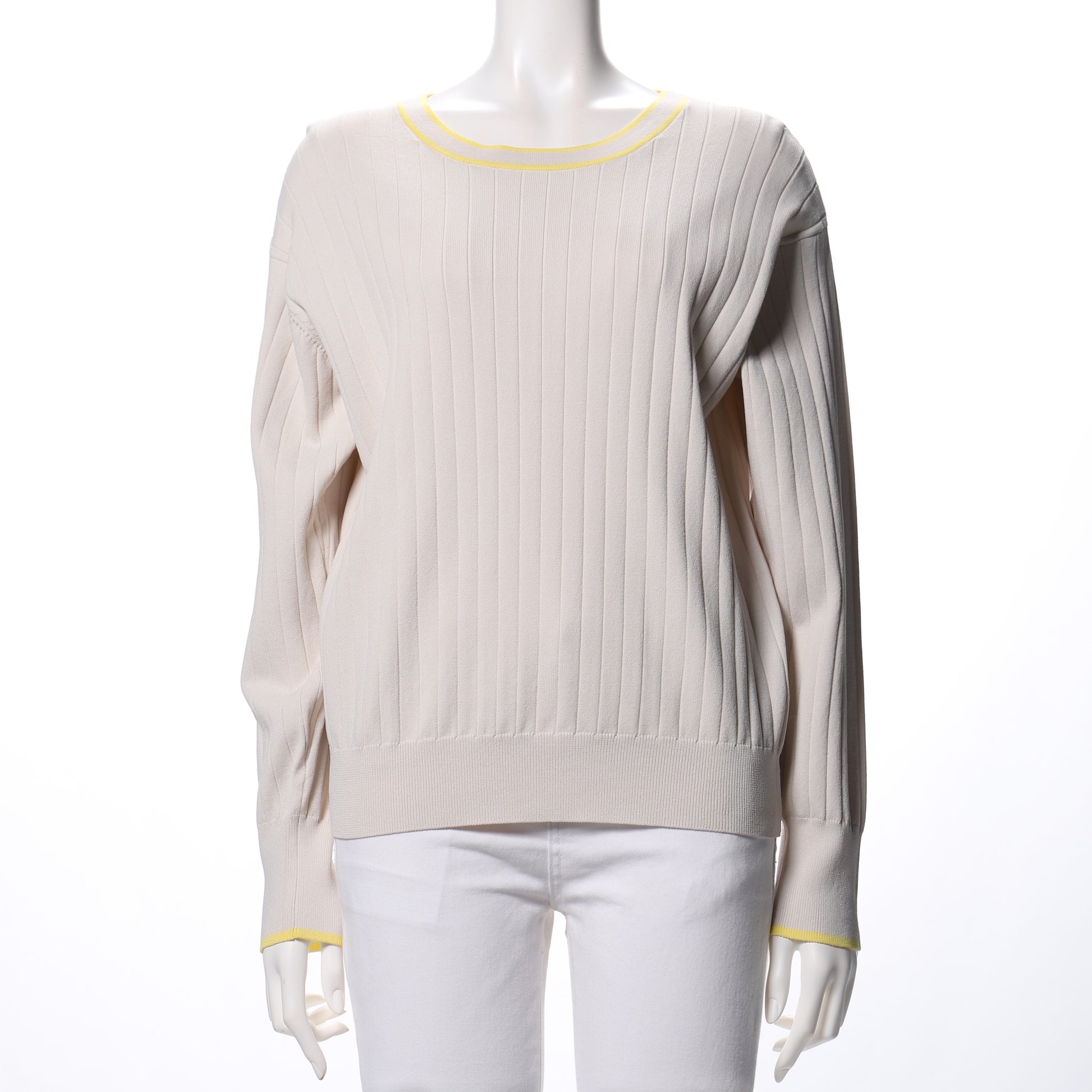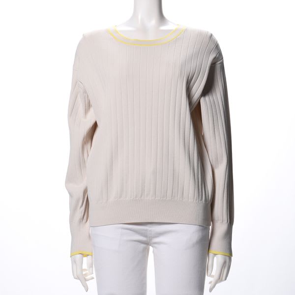 ネックラインと袖口の配色デザインがポイントのリブニットです。フレアスカートを合わせてレディライクな着こなしに、デニムパンツを合わせてカジュアルな着こなしもいいですね。