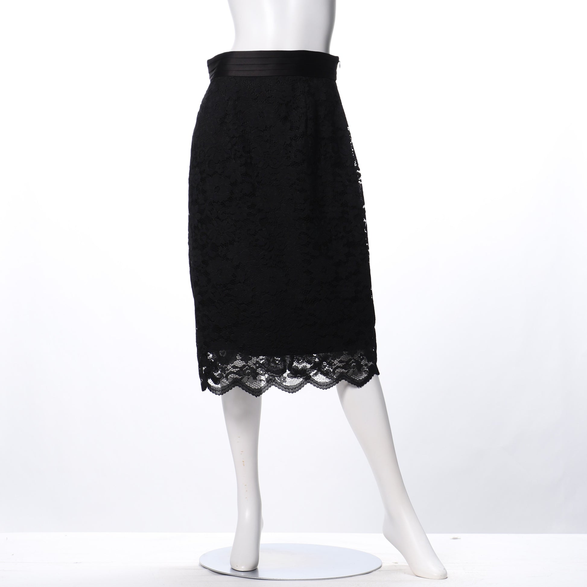 ウエスト部分の異素材使いがポイントの総レーススカート。ボウタイブラウスを合わせてフェミニンな着こなしに、スキッパーシャツを合わせてクール目に着こなすのもいいですね。