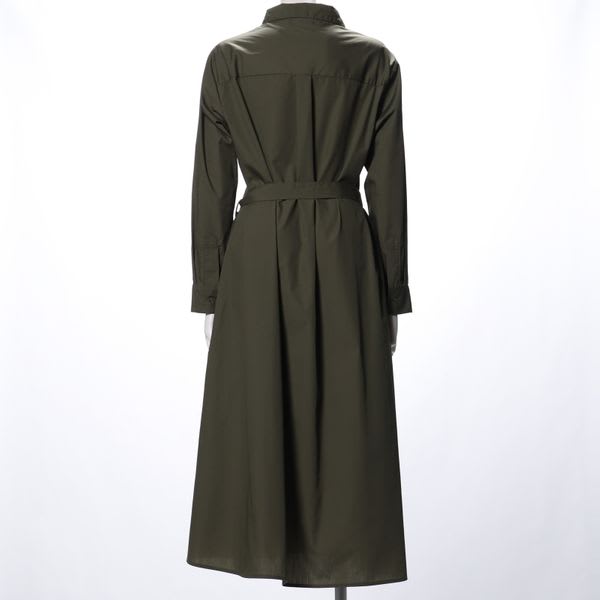 ウエストリボンの前開きシャツワンピースです。ハンドバッグにパンプスできちんと感のある仕上がりに。ゆったりめのカーディガンにスニーカーでカジュアルな着こなしも素敵ですよ。