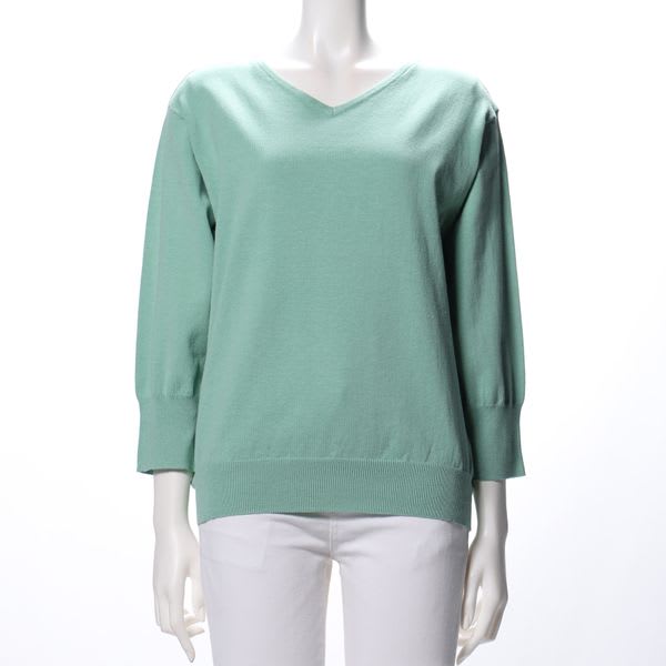 合わせていただきやすいVネックニットです。ギャザースカートを合わせて、女性らしい着こなしに。デニムパンツを合わせて、カジュアルにまとめても素敵ですよ。