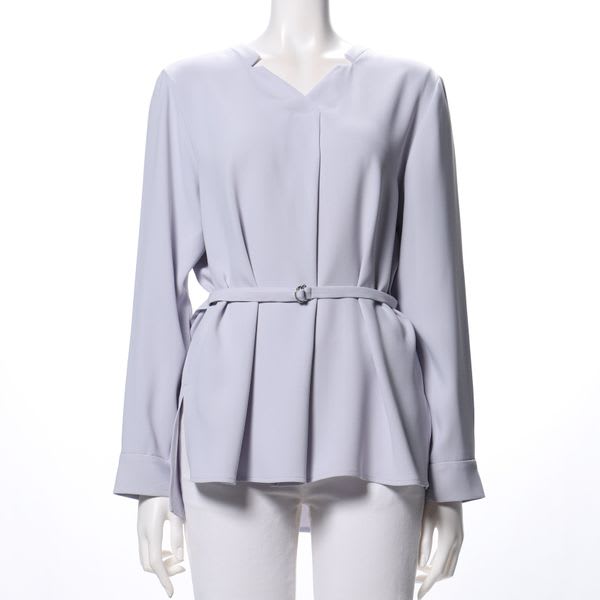 ネックラインのデザインがポイントのベルト付きブラウスです。ワイドパンツを合わせて程よくラフな着こなしに、タイトスカートを合わせてレディライクな着こなしもいいですね。