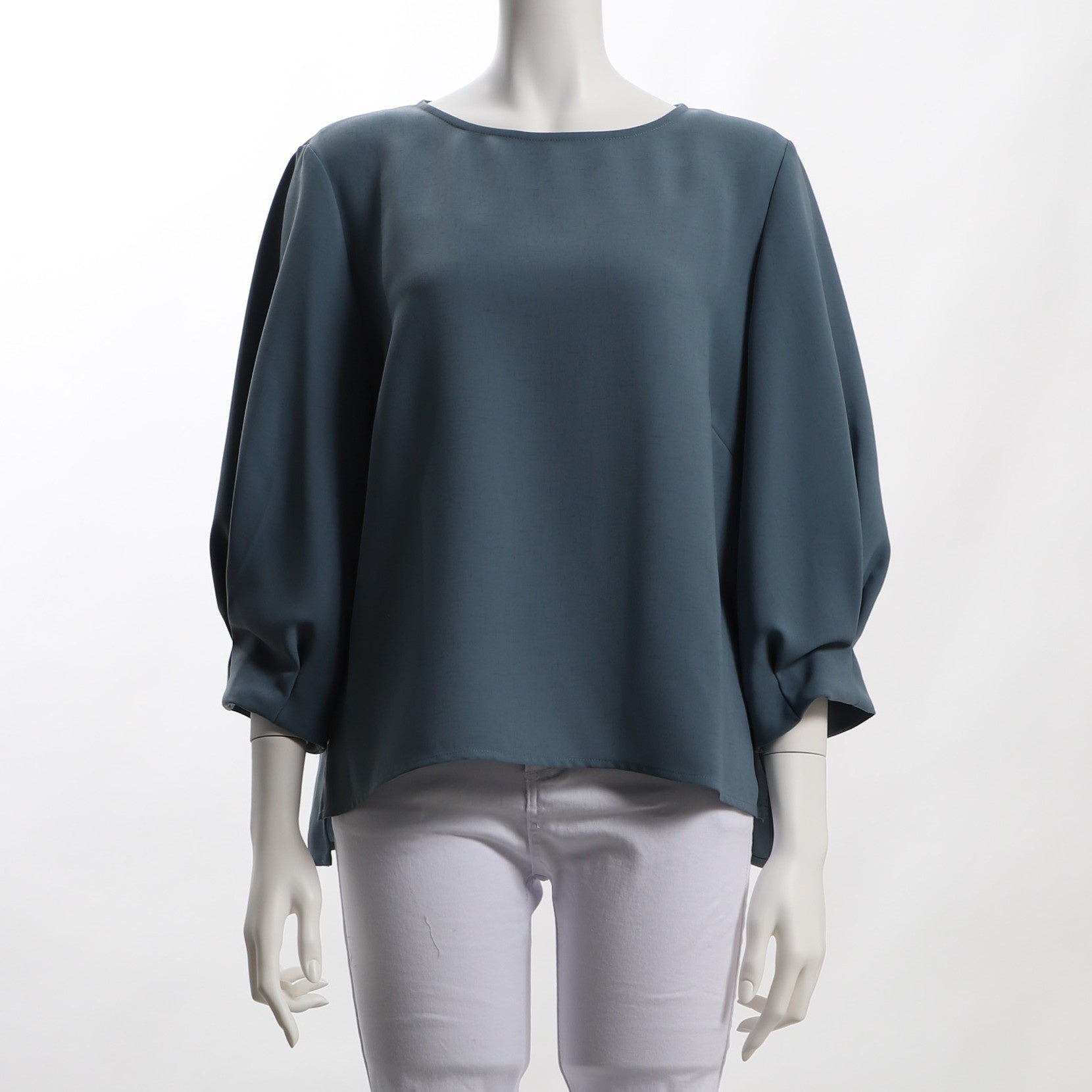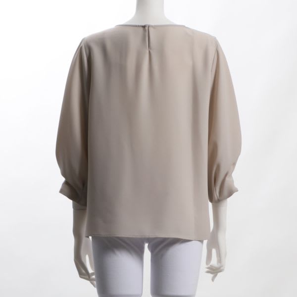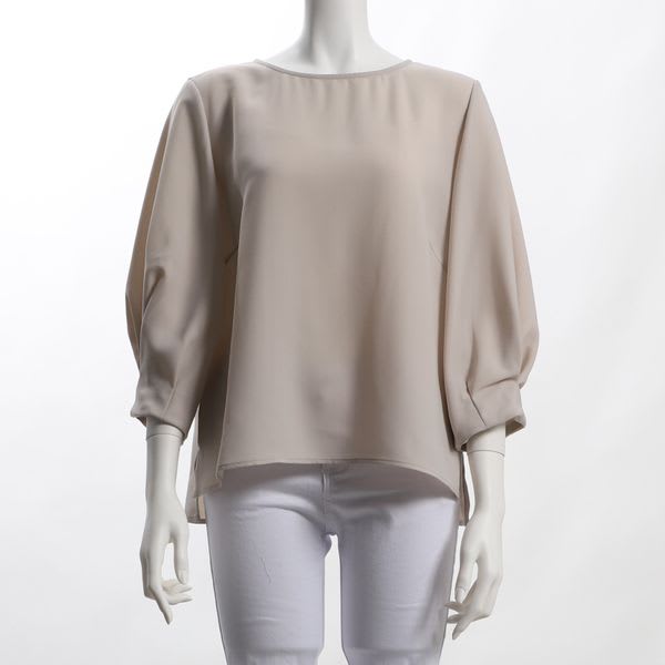 ボリュームスリーブのラウンドネックブラウスです。フレアスカートに合わせてレディライクに、デニムパンツに合わせてキレイめカジュアルコーデも良いですね。