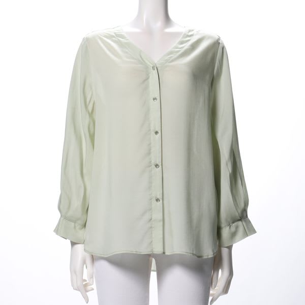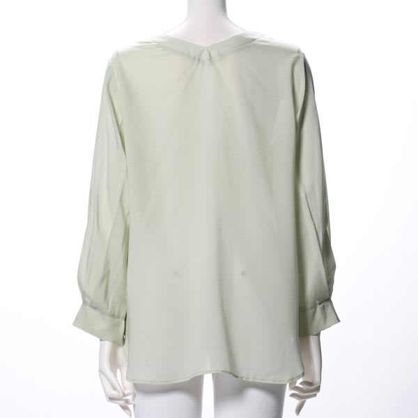 お顔周りをスッキリ見せてくれるVネックのブラウス。