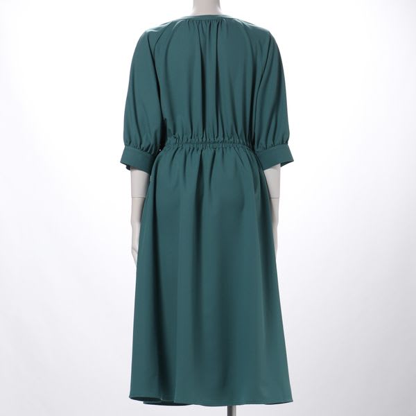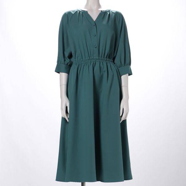 ウエストゴムが着て頂きやすいオープンフロントネックワンピースです。テーラードジャケットにパンプスできれいめな着こなしに。ゆったりめのカーディガンにスニーカーでカジュアルな仕上がりも良いですね。