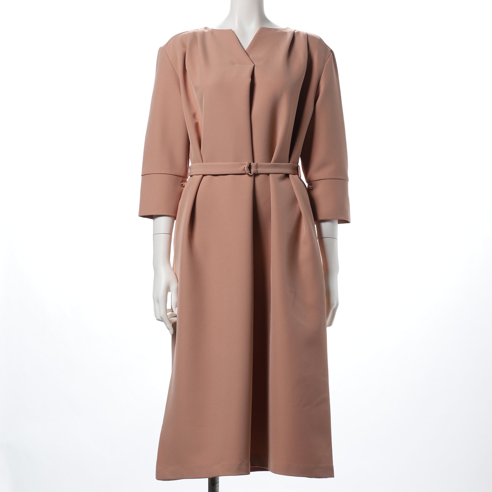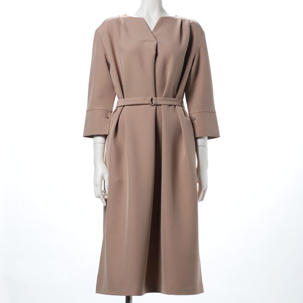 肩のタックデザインがポイントのベルト付きワンピースです。ヒールパンプスを合わせてレディライクな着こなしに、フラットシューズを合わせて程よくラフな着こなしも◎ですよ。