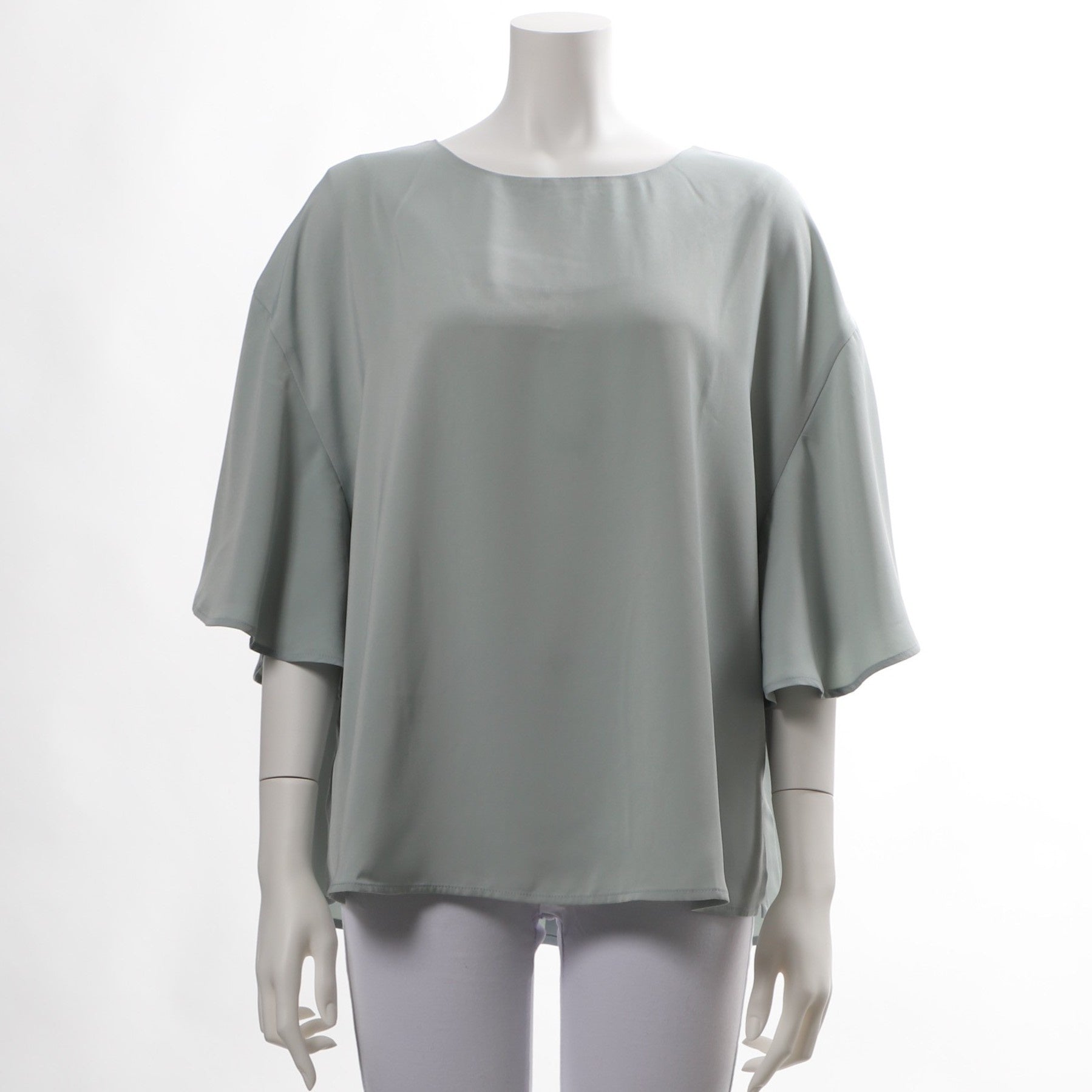 バックボタンデザインのフレアスリーブブラウスです。ワイドパンツとスニーカーを合わせてカジュアルなスタイルや、タイトスカートとポインテッドトゥパンプスを合わせてレディライクなスタイルも素敵ですよ。