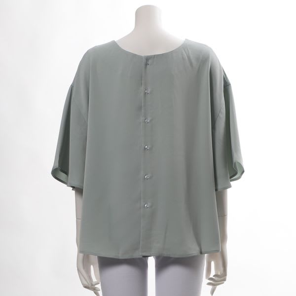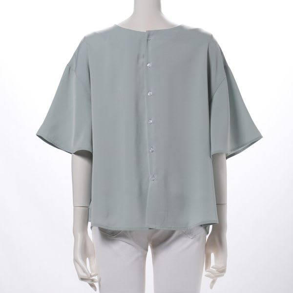 バックボタンデザインフレアスリーブブラウス