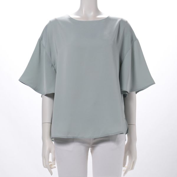 バックボタンデザインのフレアスリーブブラウスです。ワイドパンツとスニーカーを合わせてカジュアルなスタイルや、タイトスカートとポインテッドトゥパンプスを合わせてレディライクなスタイルも素敵ですよ。