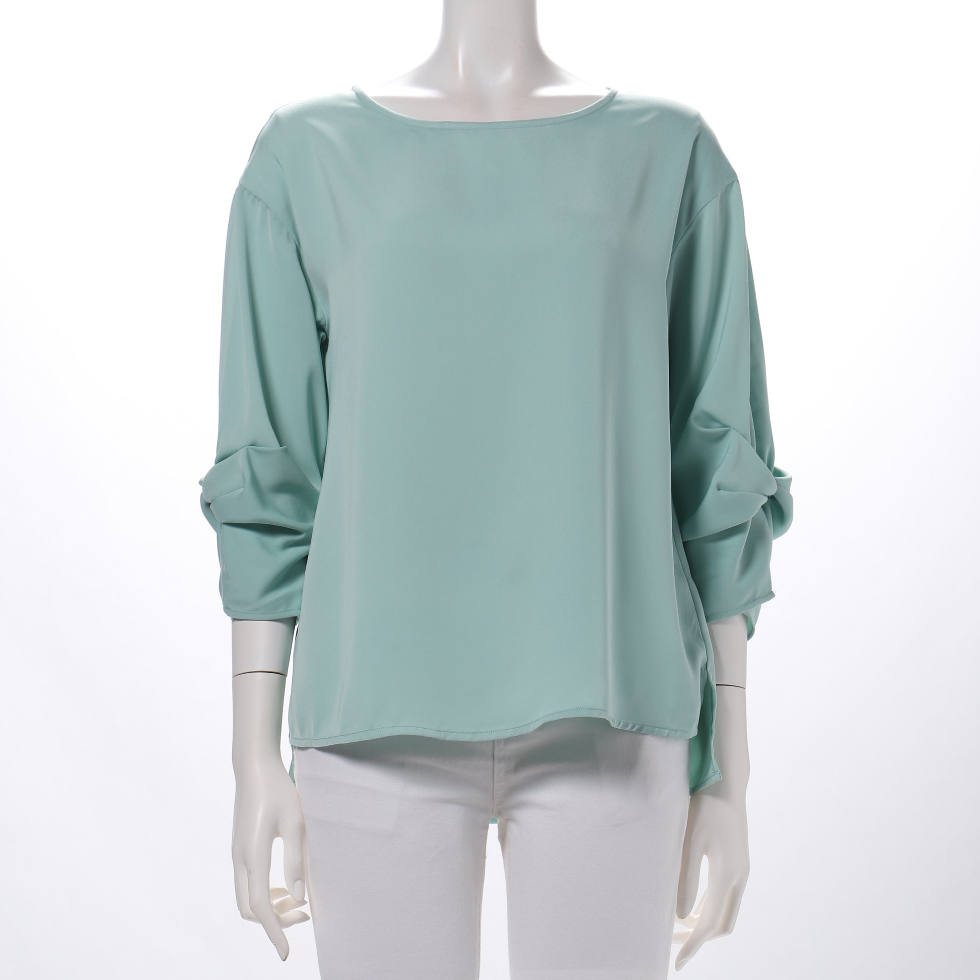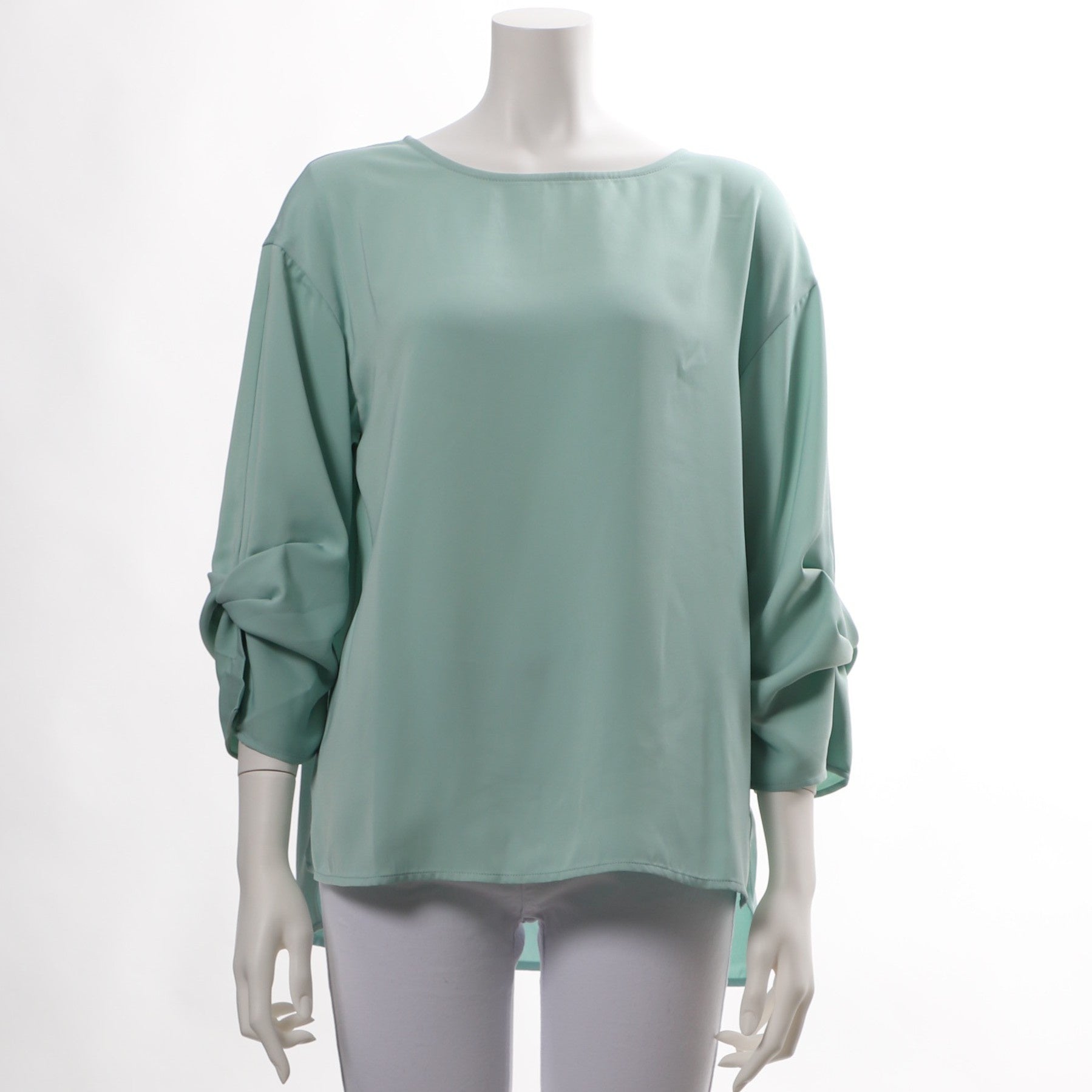 袖口のデザインが可愛らしいラウンドネックブラウスです。花柄のフレアスカートを合わせてフェミニンに、ワイドパンツを合わせて甘辛ミックスコーデもオススメ。