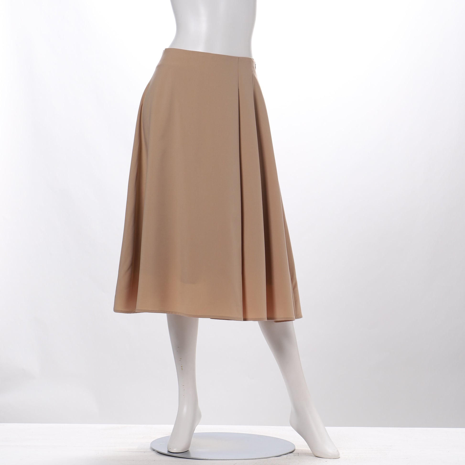 サイドタックデザインのフレアスカートです。スタンドカラーブラウスとパンプスを合わせてレディライクなスタイルや、ボートネックカットソーとスニーカーを合わせてカジュアルなスタイルも素敵ですよ。