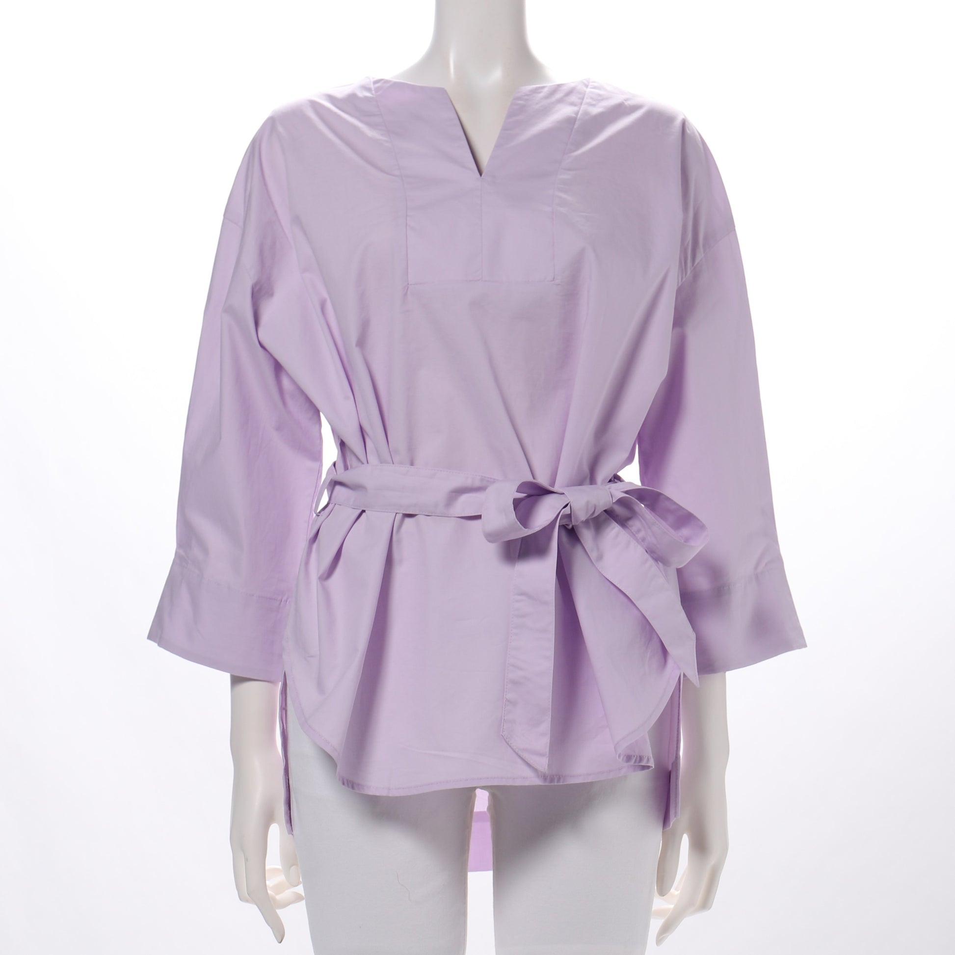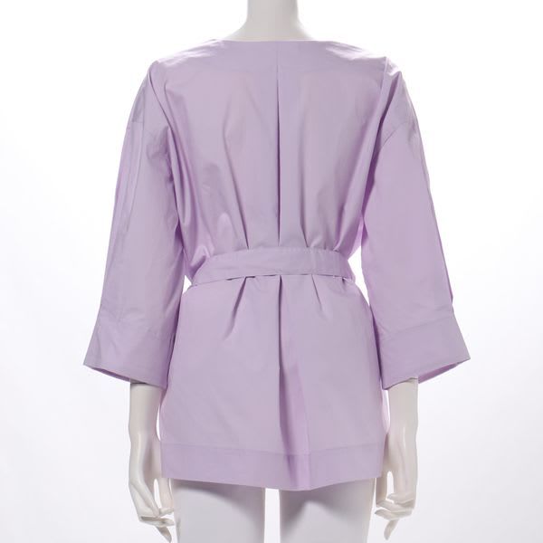 ウエストリボンベルト付きオープンフロントネックブラウス