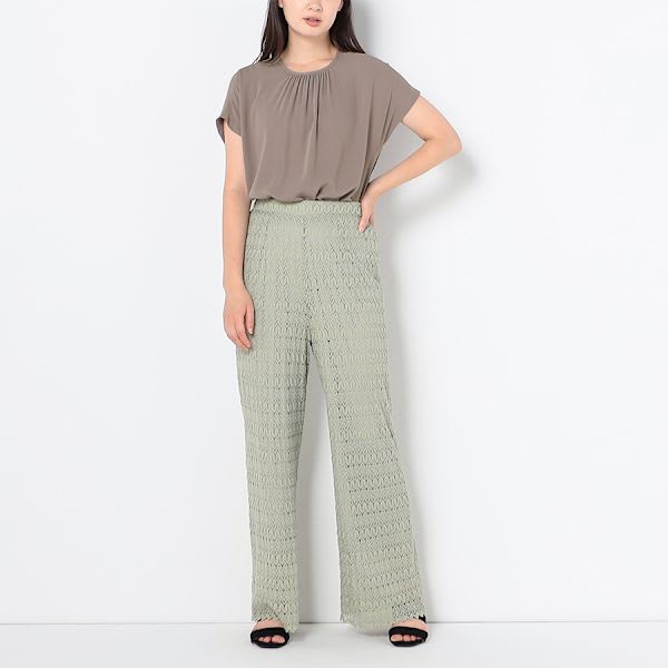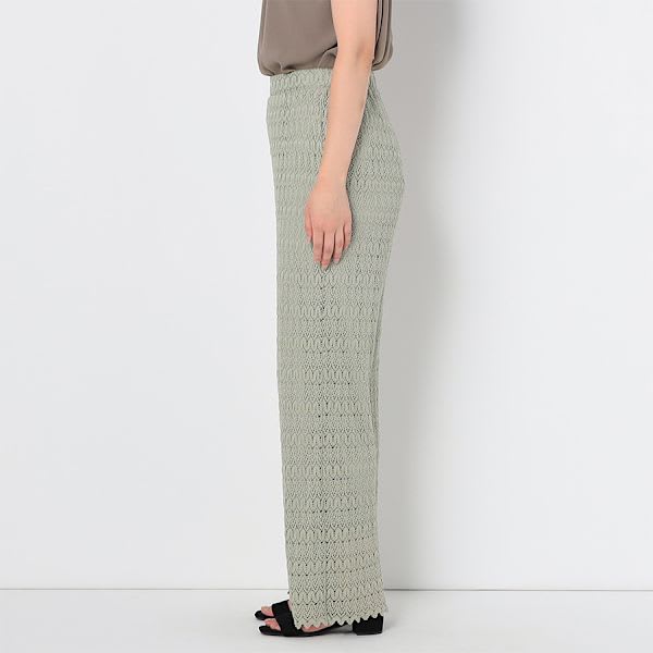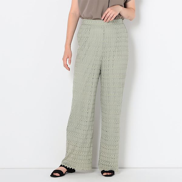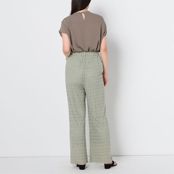 一部ゴムが履きやすい総レースパンツです。シャツを合わせて、きれいめな仕上がりに。オーバーサイズのカットソーを合わせて、ラフな着こなしも素敵ですよ。