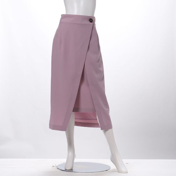 レイヤード風ラップスカートです。フィット感のあるリブニットにヒールパンプスを合わせてスタイリッシュな印象に、ボリュームスリーブのブラウスを合わせて華やかなコーデも◎。