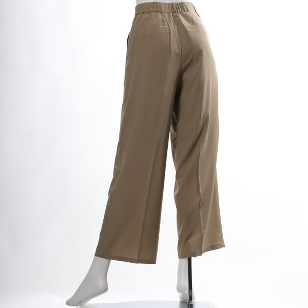 タックワイドパンツ。 トップスにはボーダー柄のカットソーを合わせてカジュアルに、Vネックのとろみブラウスでキレイめにまとめてもステキです。