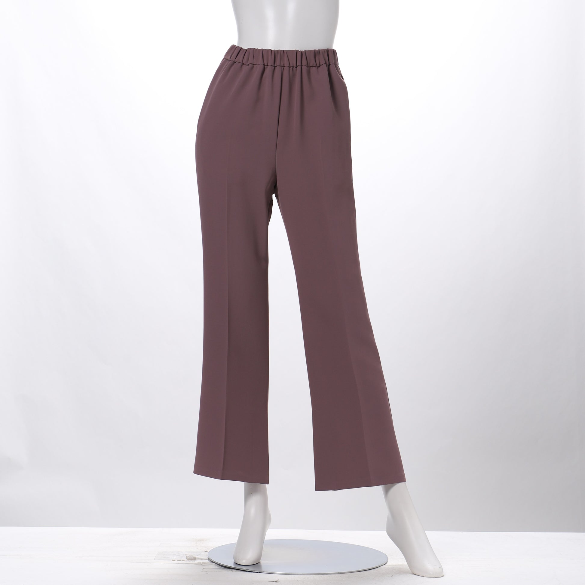 上品な光沢素材と今年らしいセミフレアシルエットがポイントのパンツ。スキッパーブラウスとヒールパンプスを合わせてスタイリッシュなスタイルに、カットソーとスニーカーを合わせてカジュアルスタイルも素敵ですよ◎