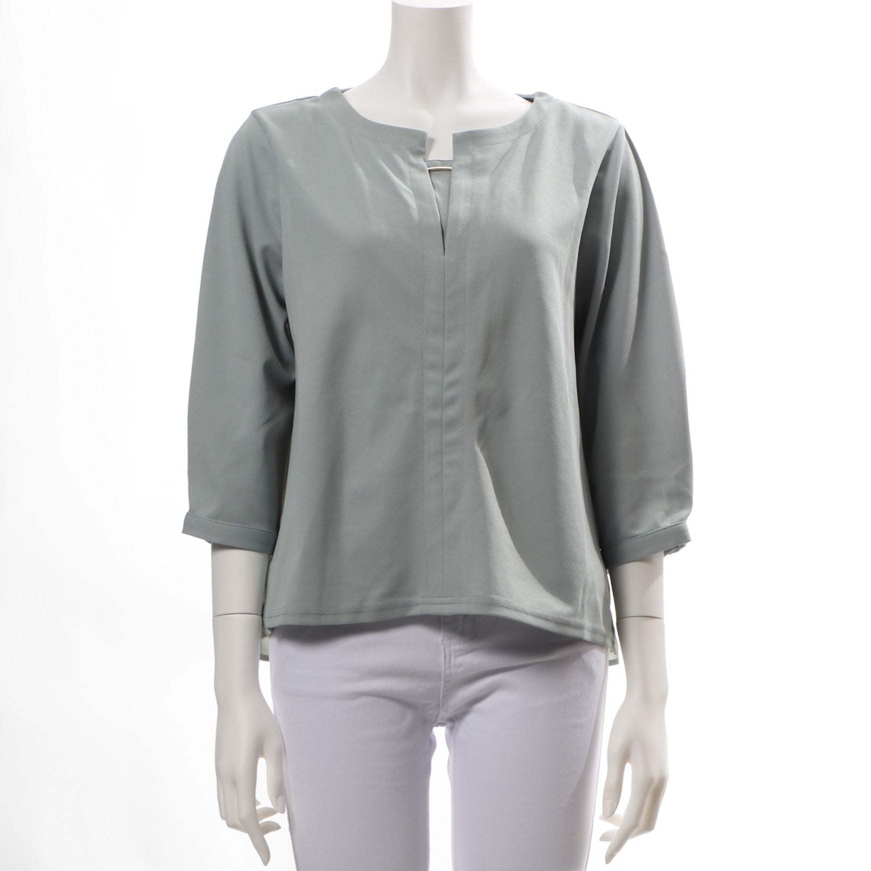 バックデザインやネックラインのメタルパーツがポイントのカットソー。ボトムスにはタイトスカートを合わせて女性らしく、デニムパンツでカジュアルにまとめてもいいですね。