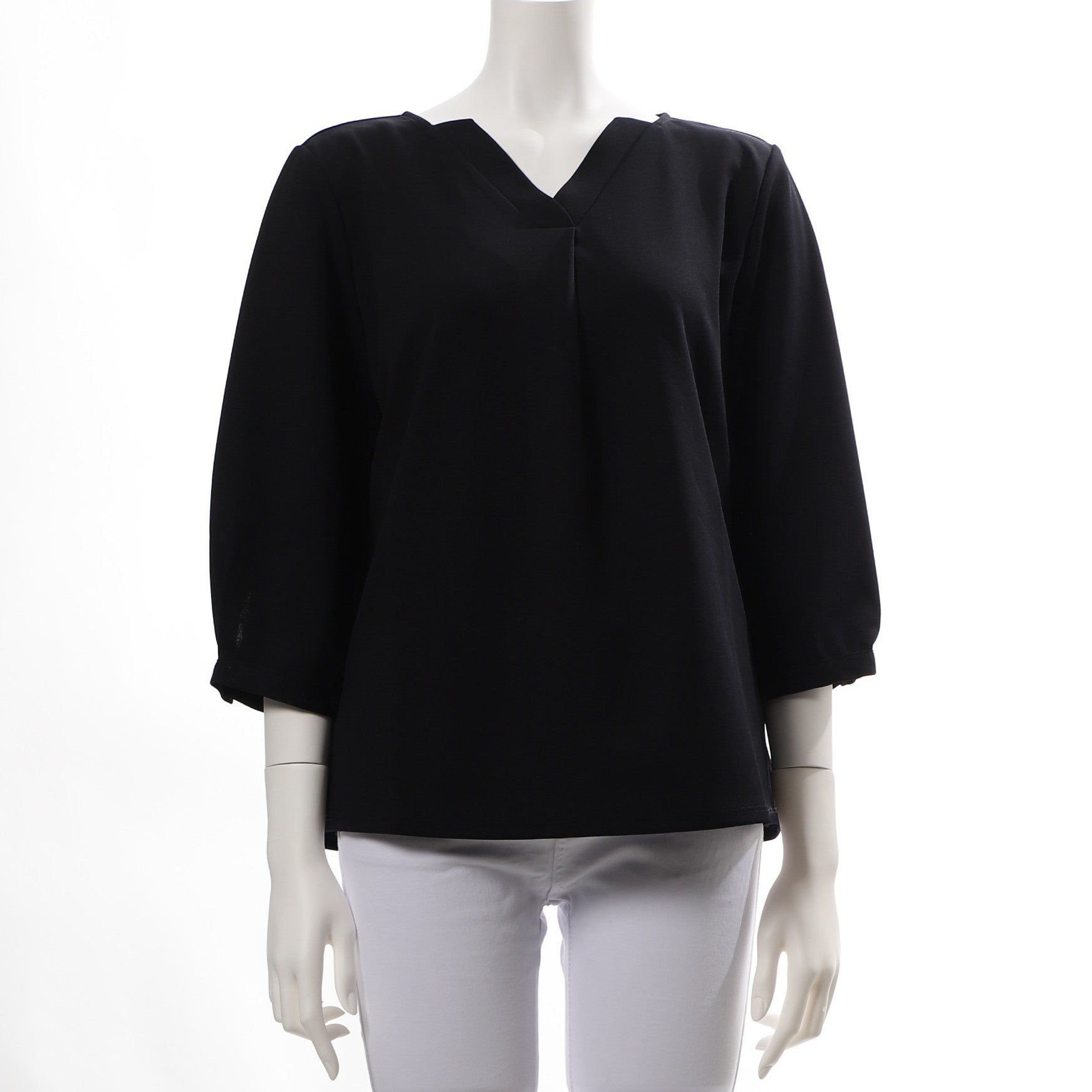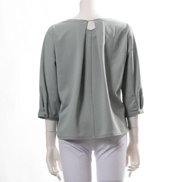 バックデザインがポイントのカットソー。ボトムスにはテーパードパンツを合わせてクールに、タイトスカートでレディライクにまとめてもいいですね。