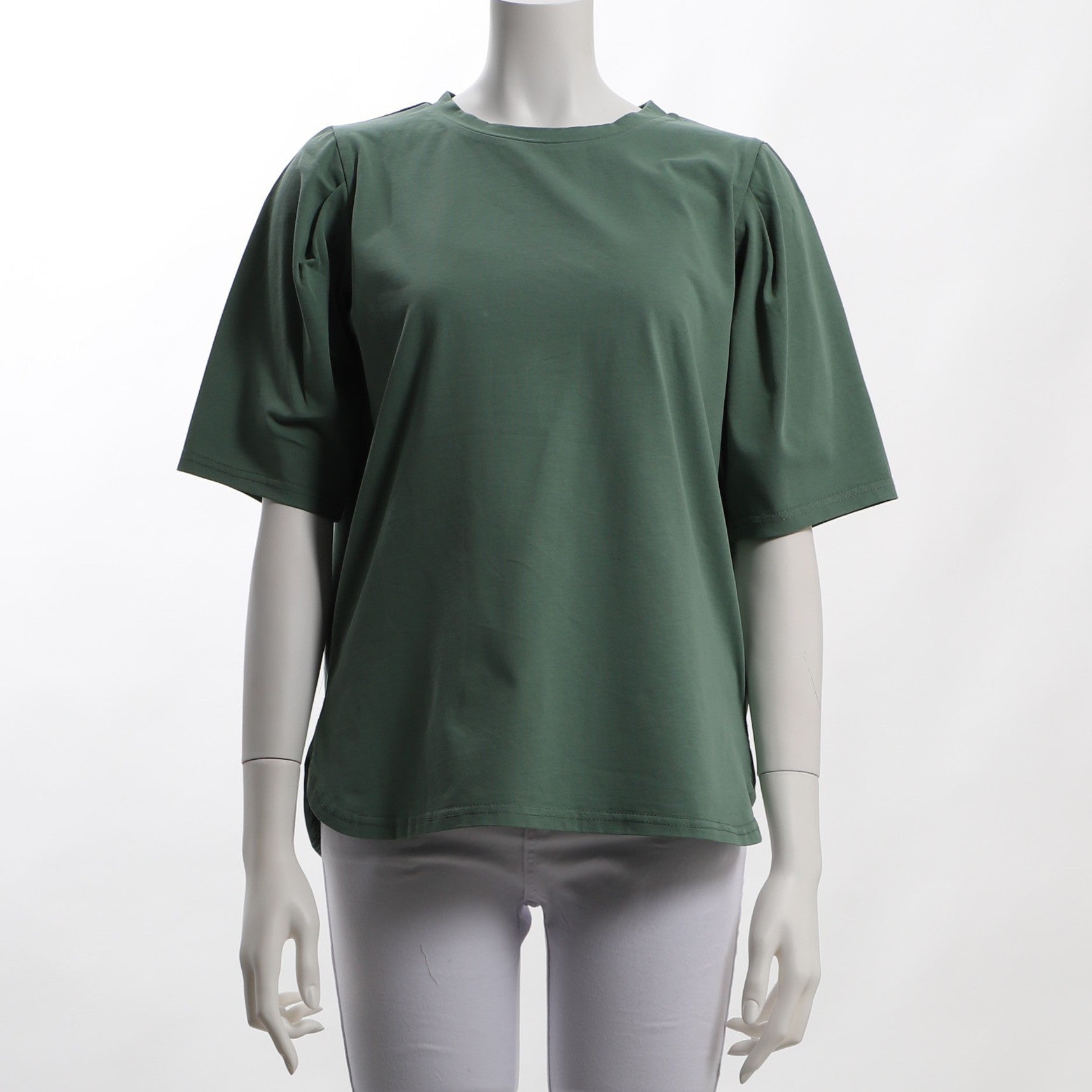 ふんわりとしたお袖やサイドスリットがさりげないアクセントになったカットソー。ボトムスにはデニムパンツを合わせてカジュアルに、プリーツスカートで女性らしくまとめてもいいですね。