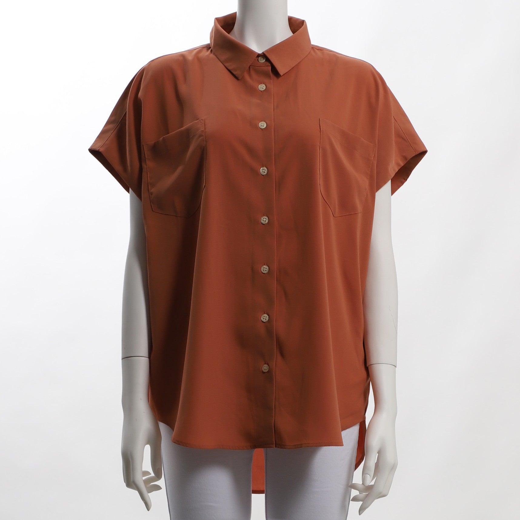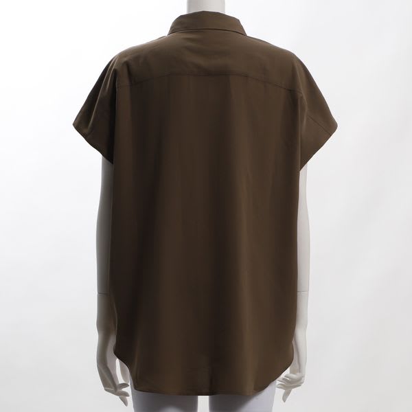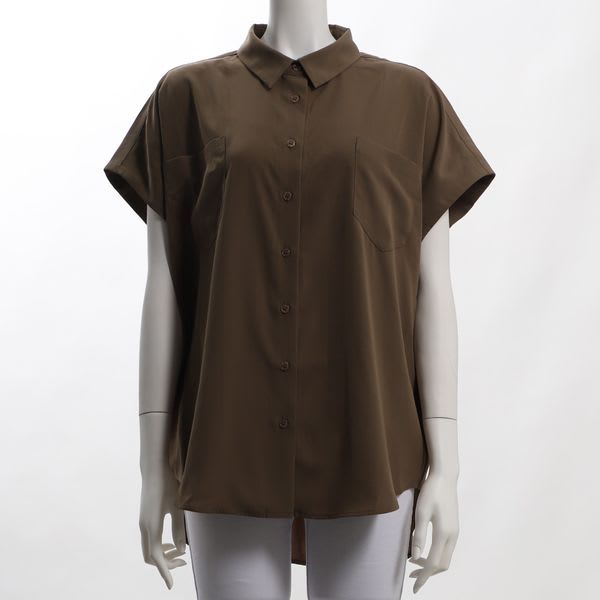 ポケットがアクセントのシャツカラーブラウスです。ボトムスにはテーパードパンツを合わせてマニッシュに、プリーツスカートで女性らしさをプラスしてもいいですね。