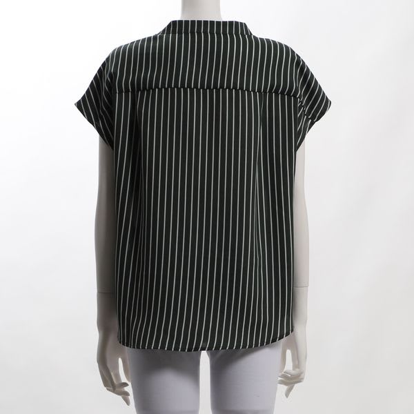 アウトポケットがポイントのストライプ柄ブラウス。ボトムスにはテーパードパンツを合わせてクールに、デニムパンツでカジュアルにまとめてもいいですね。